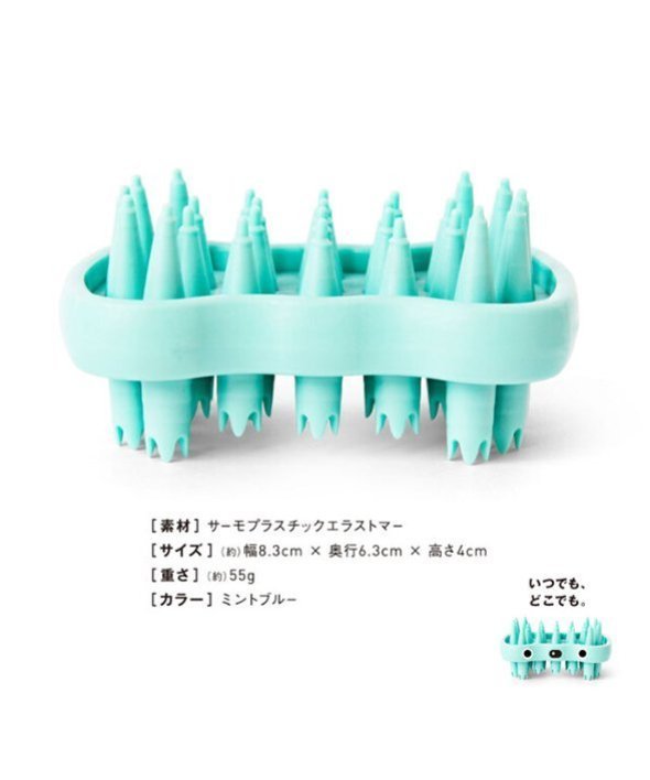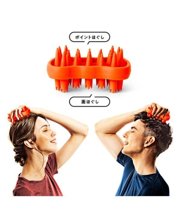 ■突起の鋭い「ポイントほぐし」面と突起の多い「面ほぐし」面の 2種類の刺激。■お風呂場でも使える一体成型使い易い手のひらサイズ■2種類の突起が、頭皮をほぐします。【商品規格】サイズ:(約)83×40×63mm【重量】(約)55g