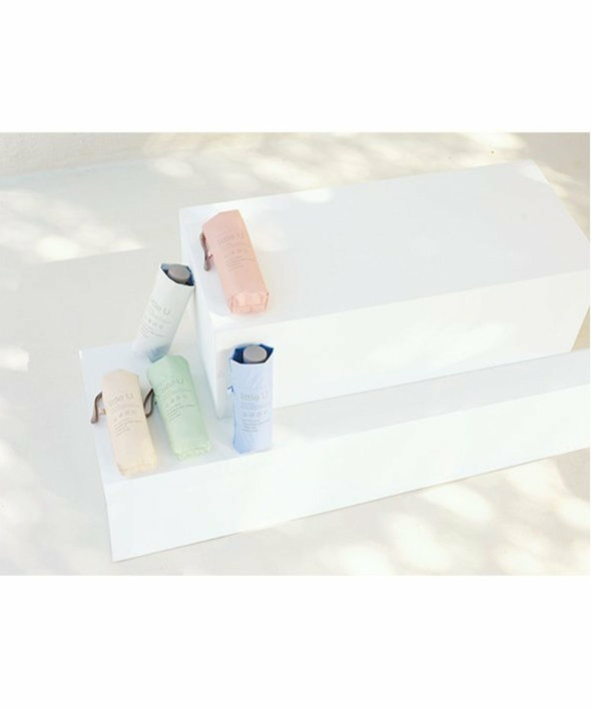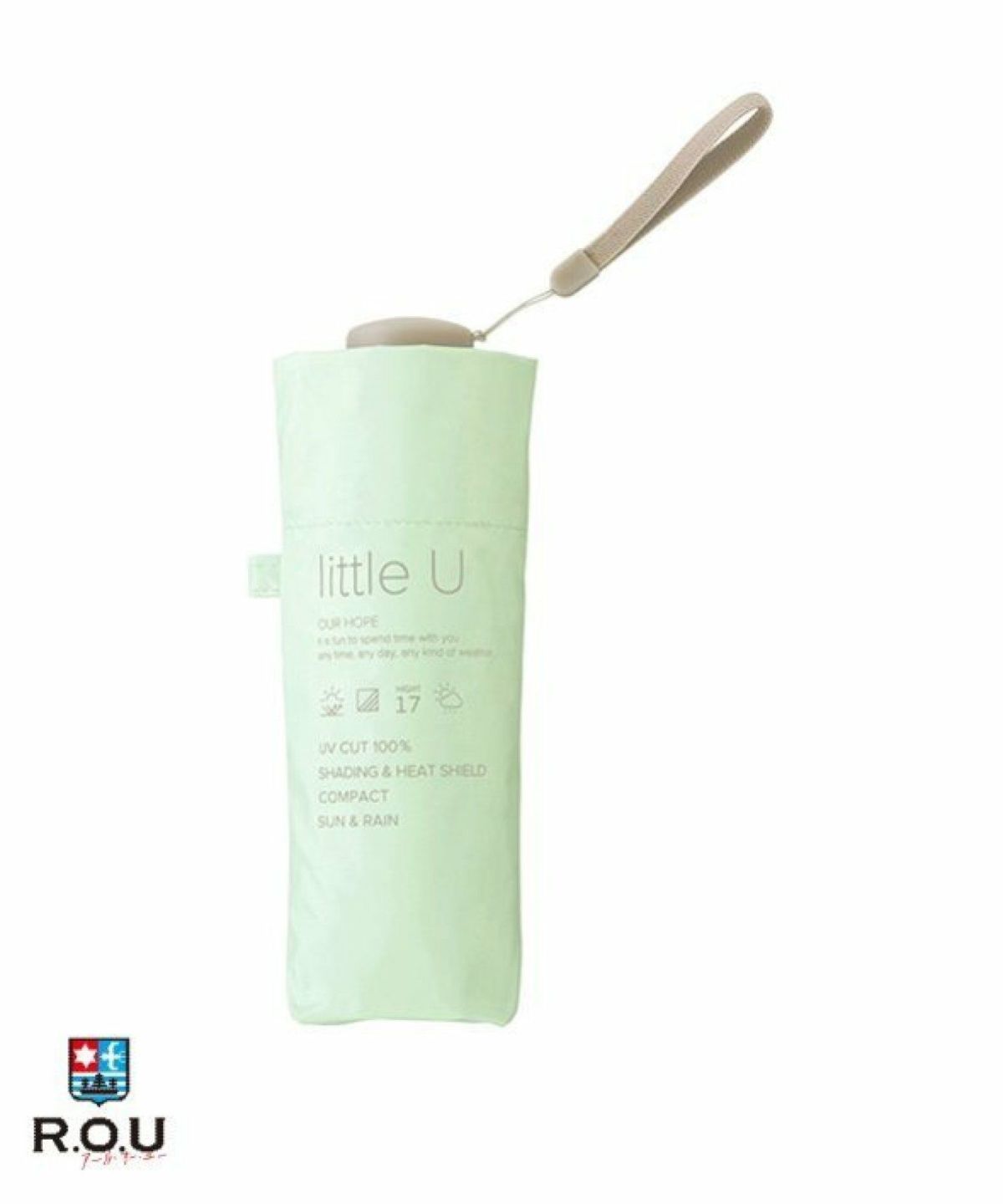 くすみカラーがトレンドらしいコンパクトな晴雨兼用。約140gの軽量仕様。
