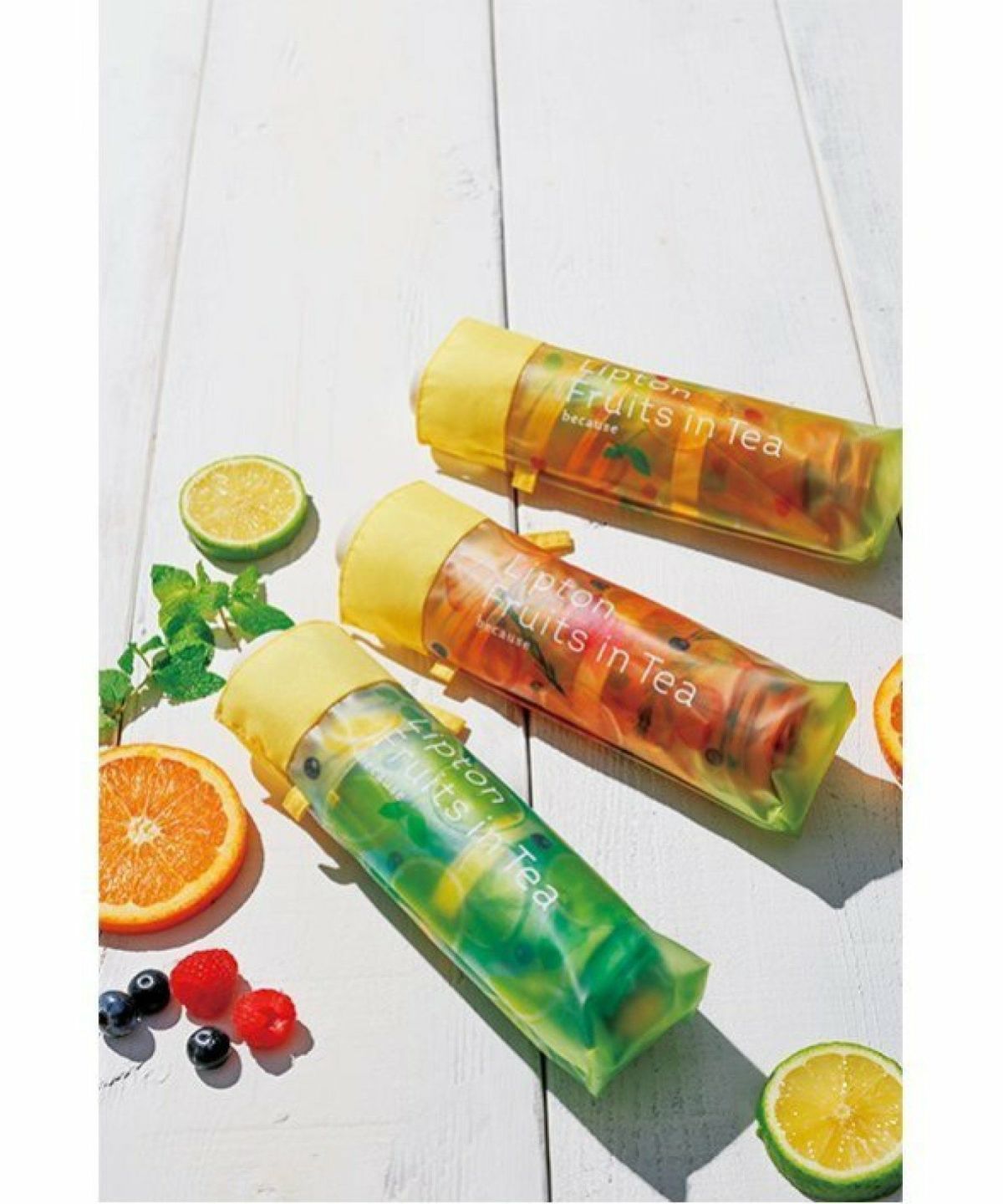 リプトンとのコラボアイテム。カラフルなフルーツが瑞々しいポップなデザイン。