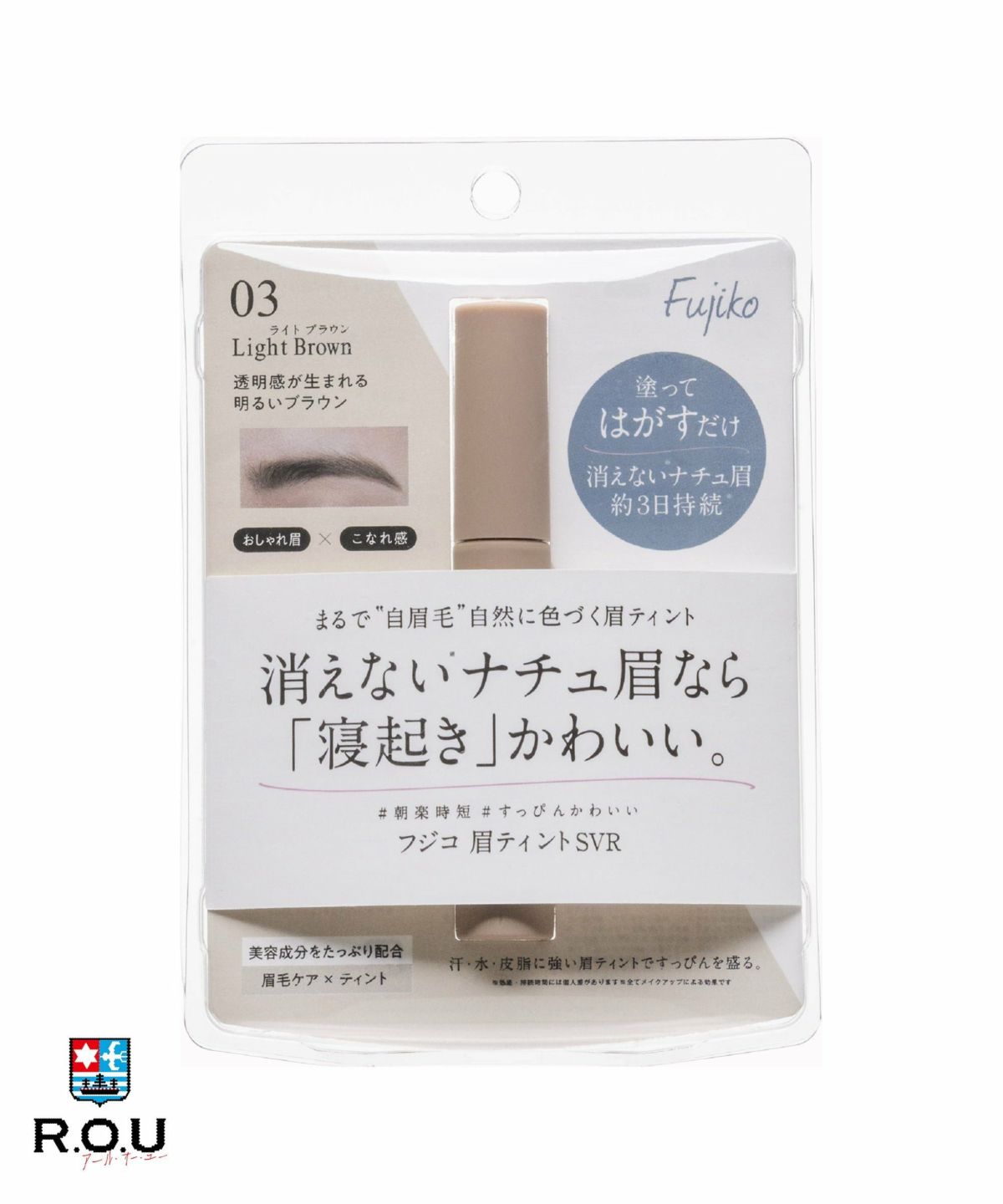 消えないナチュ眉なら、寝起きかわいい ! 塗って剥がすだけ、自然に色付きまるで“自眉毛”を演出。かならぼ フジコ眉ティント ライトブラウン SVR03