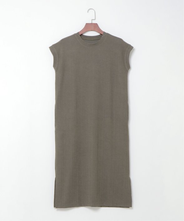立体感のあるジャガード織のカットソー素材を使ったワンピースはロング丈で