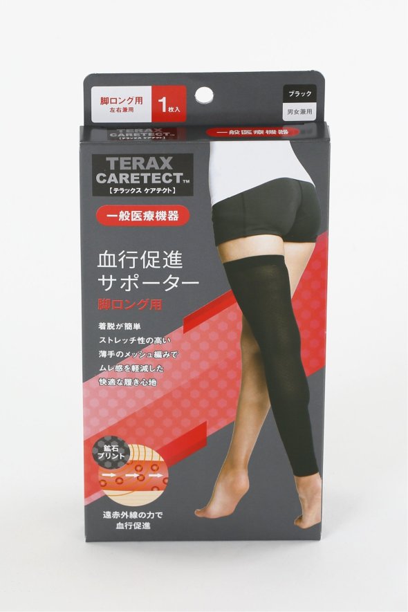 遠赤外線の効果で血行を促進する一般医療機器のサポーター、脚ロングタイプです。