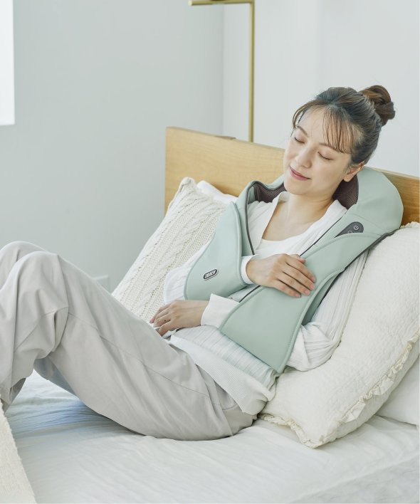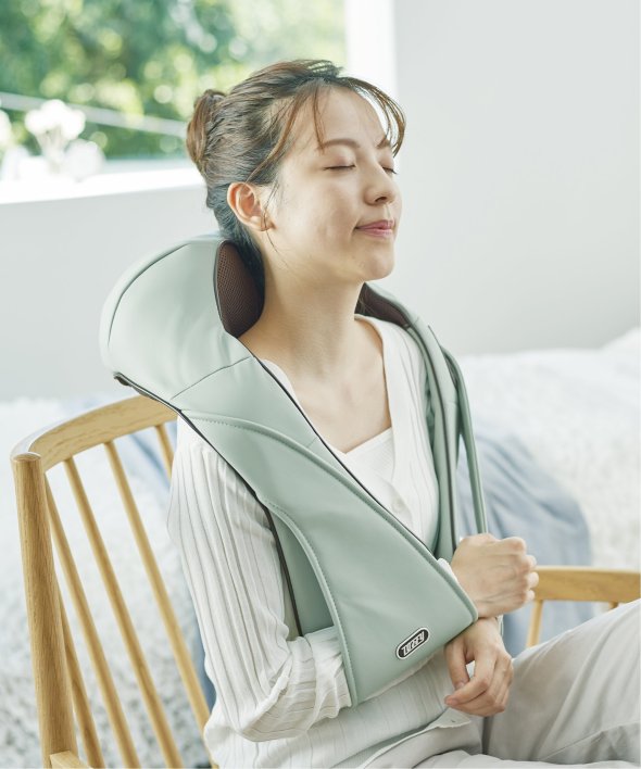 本体に腕を通すことで首や肩に密着し、しっかり揉みほぐしができるのはもちろん、位置を変えれば首周りだけでなく、背中や腰回りの筋肉も幅広くマッサージできます。