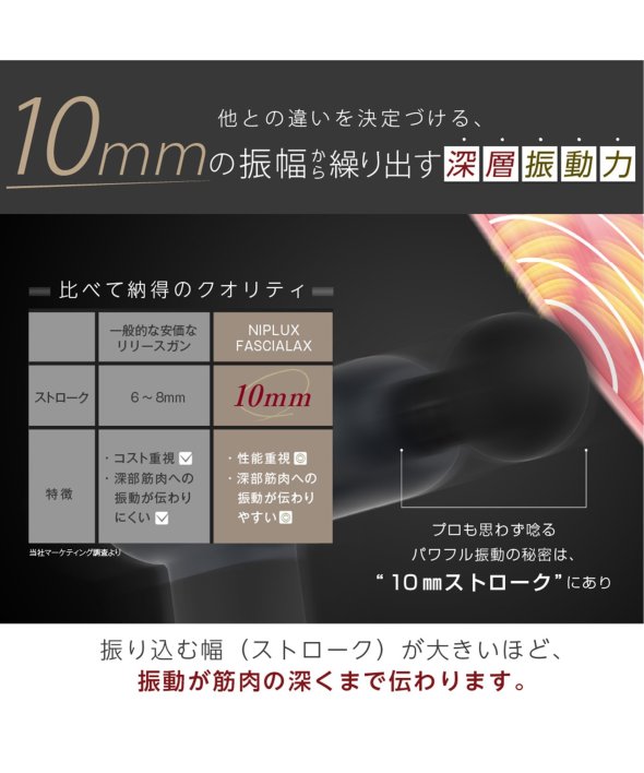 日本企業が開発した、超ロングストロークの筋膜リリースガン。
