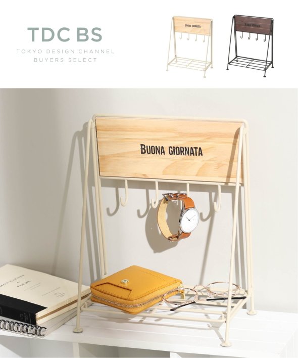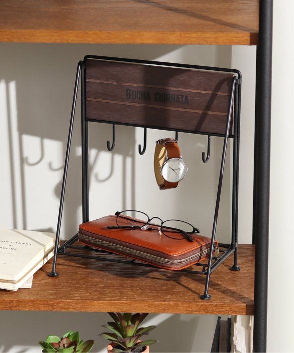 [アイテム説明]アイアン×ウッドで作られたフックスタンドです。置く場所に迷ってしまう鍵を収納しておけます。フックの下にはちょっとした小物や、玄関先では印鑑などを置いておくのもおすすめ!使わない時は折りたたんでおけます。※天然木のため、一点一点に微妙な色・風合いなど個体差がございます。
