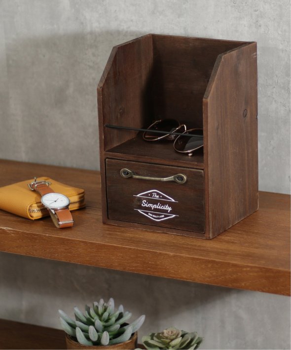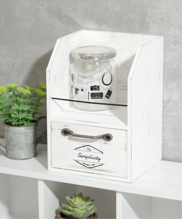 [アイテム説明]アンティーク加工が施された木製ラック。小物のディスプレイや、小さ目のスパイスラックをお探しの方にもおすすめです。アンティークゴールドカラーの取っ手で雰囲気たっぷり!※天然素材の為、木のフシや多少の傷など見受けられる部分がございますが不良ではございません。塗装の色むらは風合いを出す為の加工です。