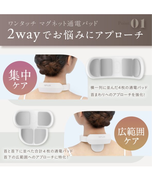 集中ケア・広範囲ケア、2種類の通電パッドを切り替えることができます。