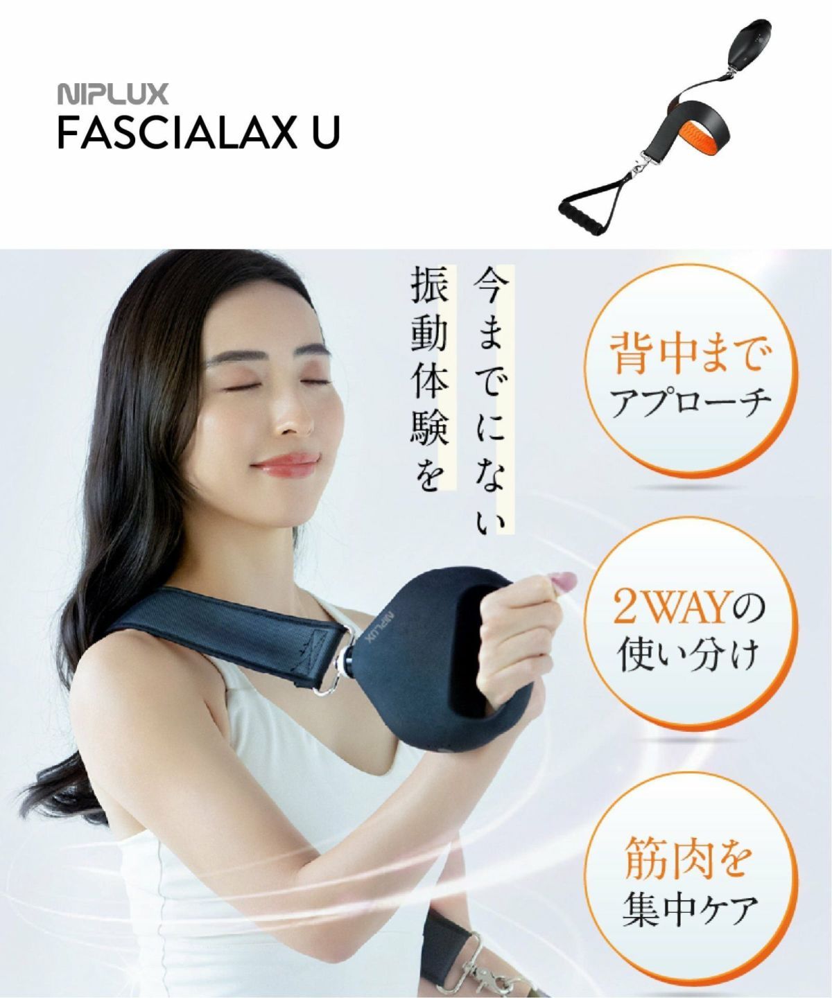 TDCBS 他の画像を見る バンド型リリースガンで背中ケアを実現! NIPLUX FASCIALAX U ニップラックス ファシアラックス U ¥ 18,700 税込 カートに入れる お気に入りに登録する
