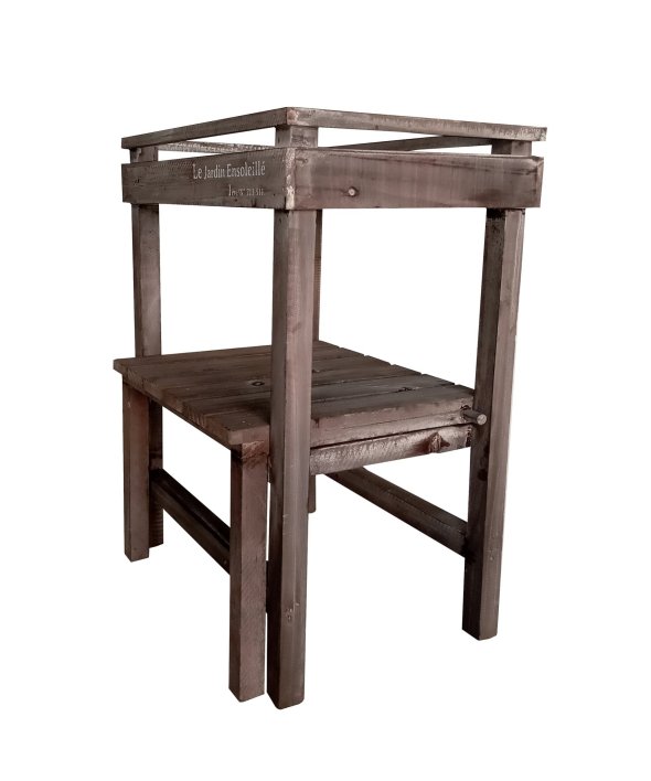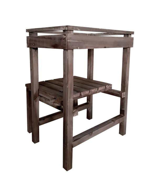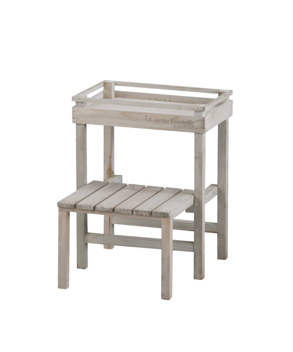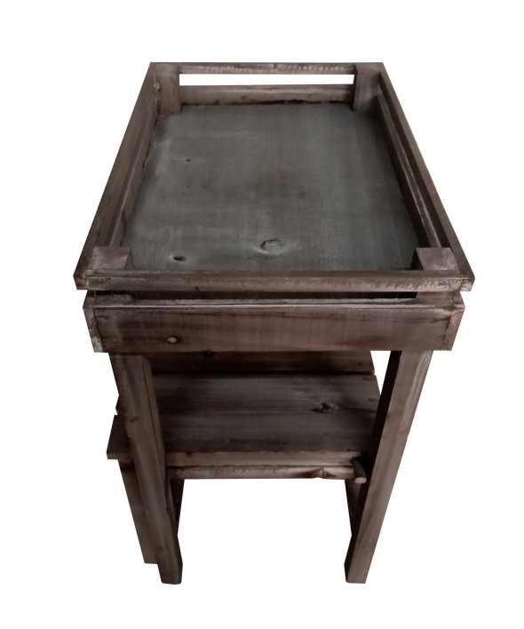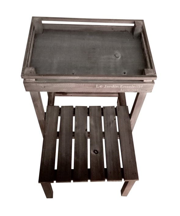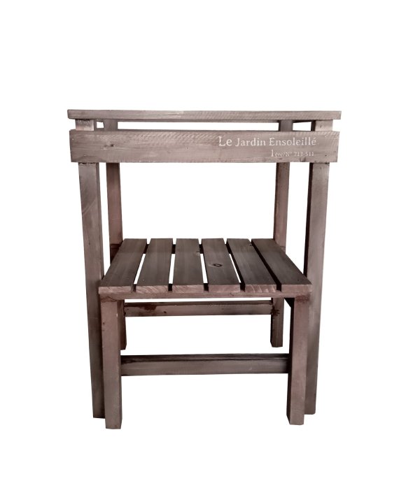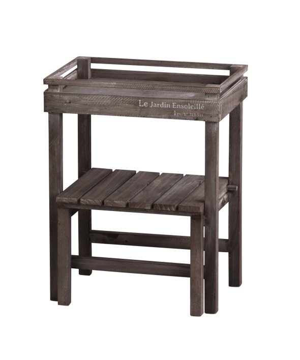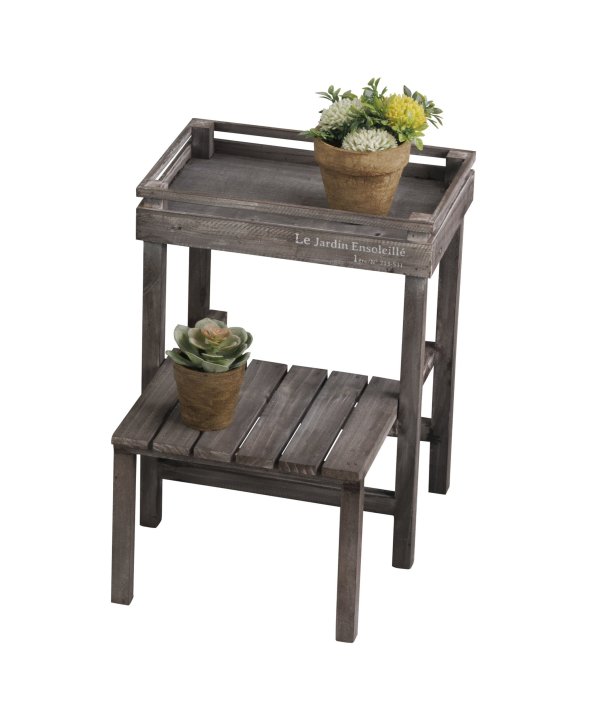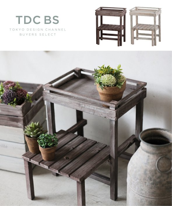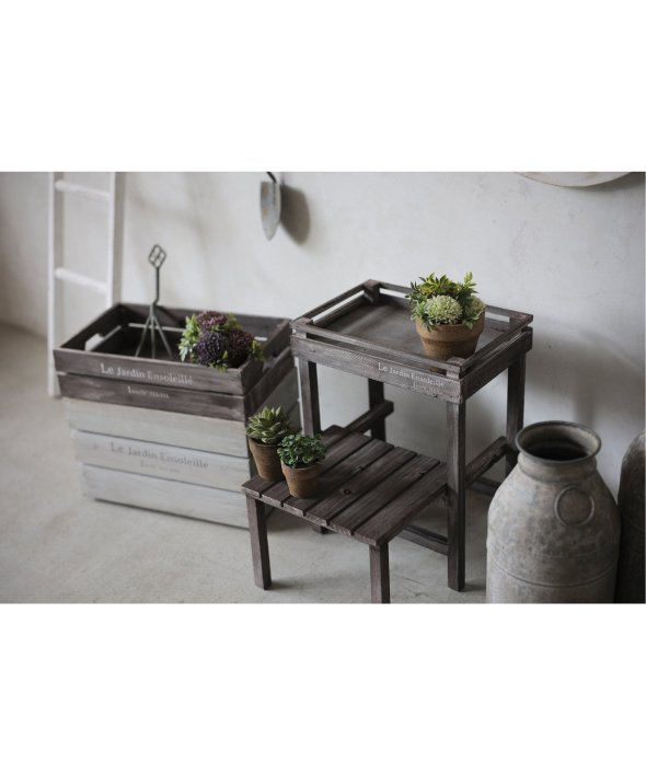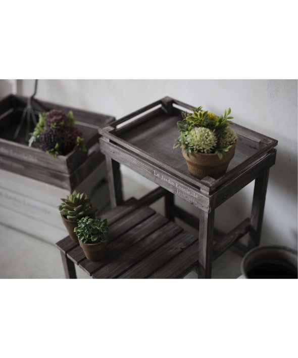 ウッド素材で温かみのあるアルブティックスタンド。少しくすんだ木材が魅力。ほんのりアンティークなインテリアとして「見せる収納」を楽しめます。鉢植を置いてガーデニングにもオススメです。