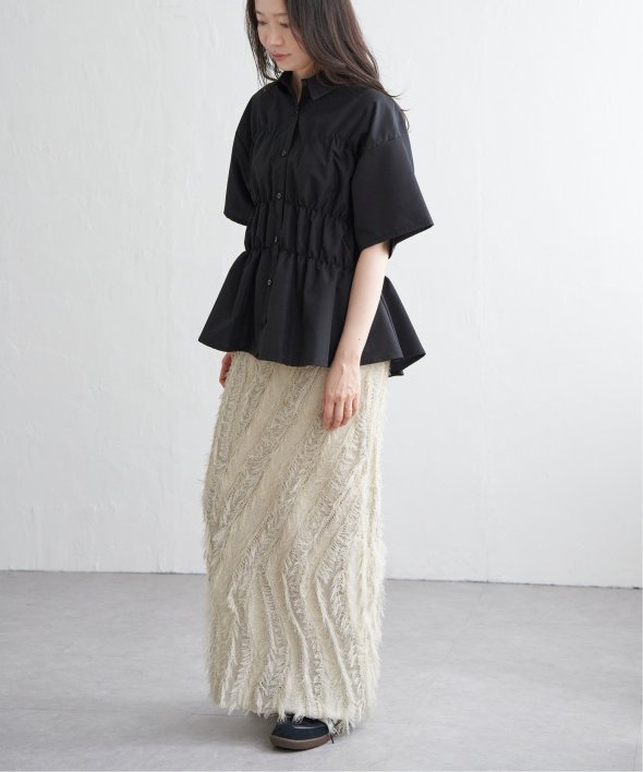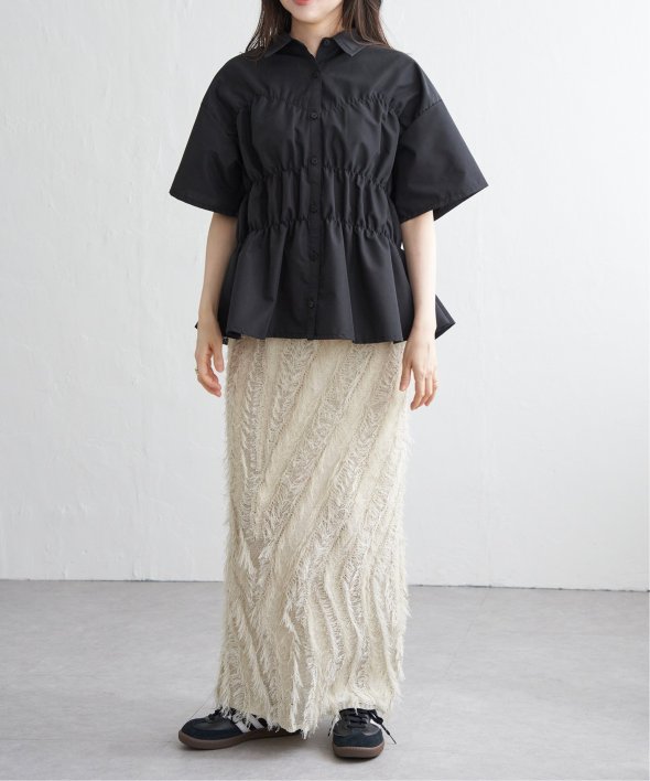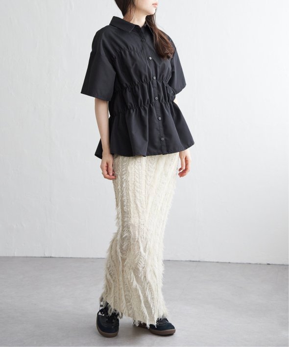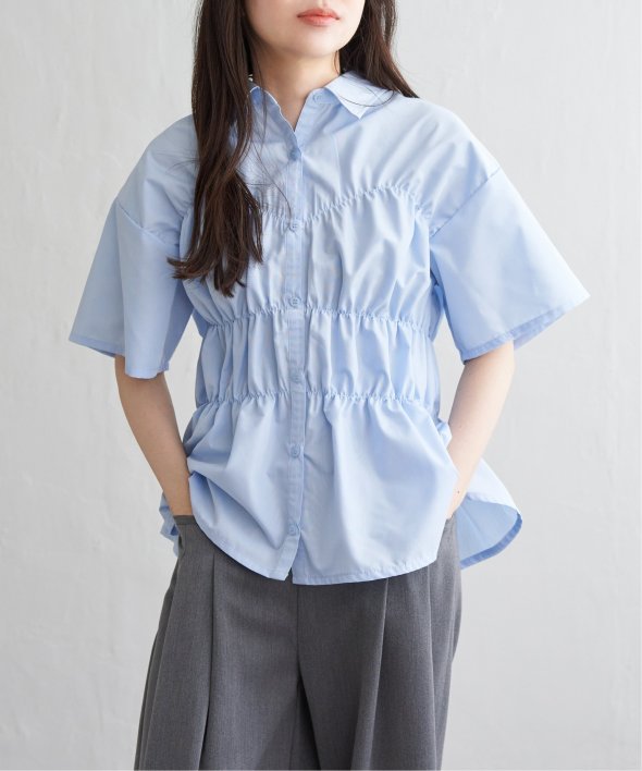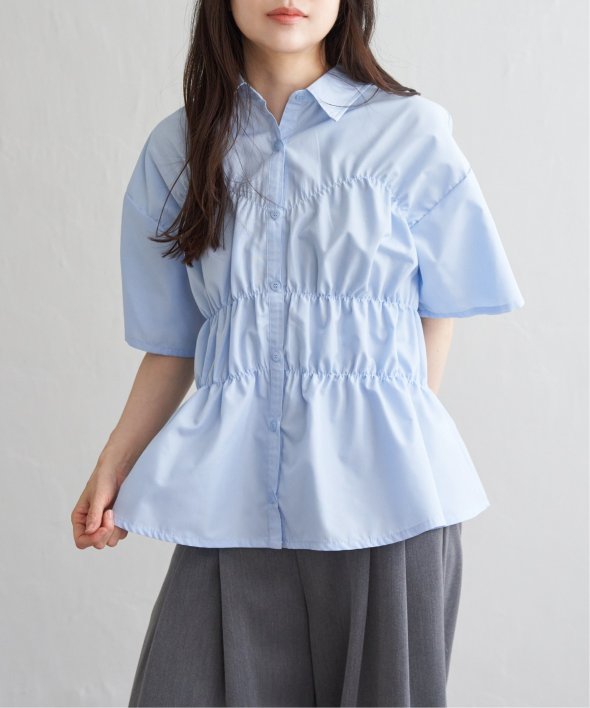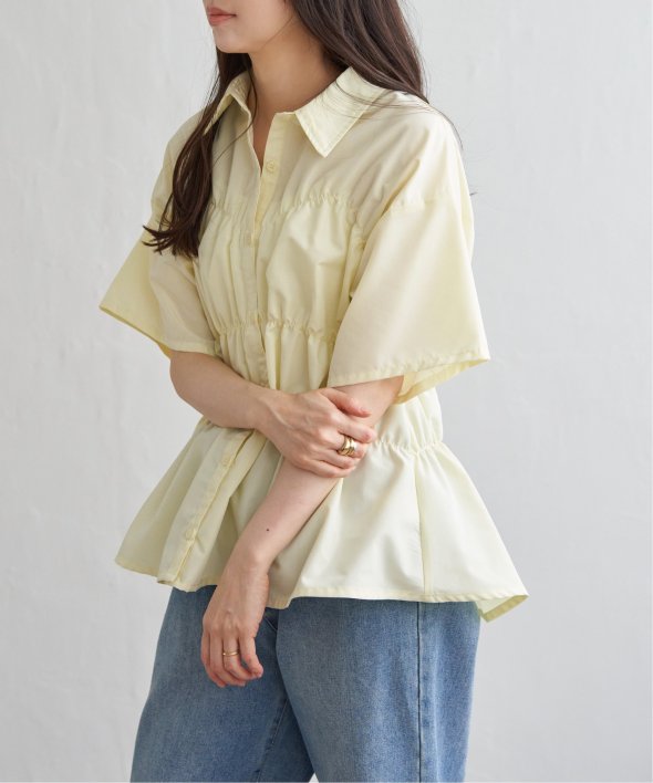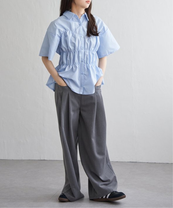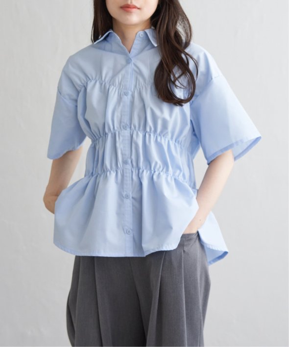 シンプルな半袖シャツに立体感と動きを加えたデザインは、一枚でスタイリングが完成する主役トップスです。