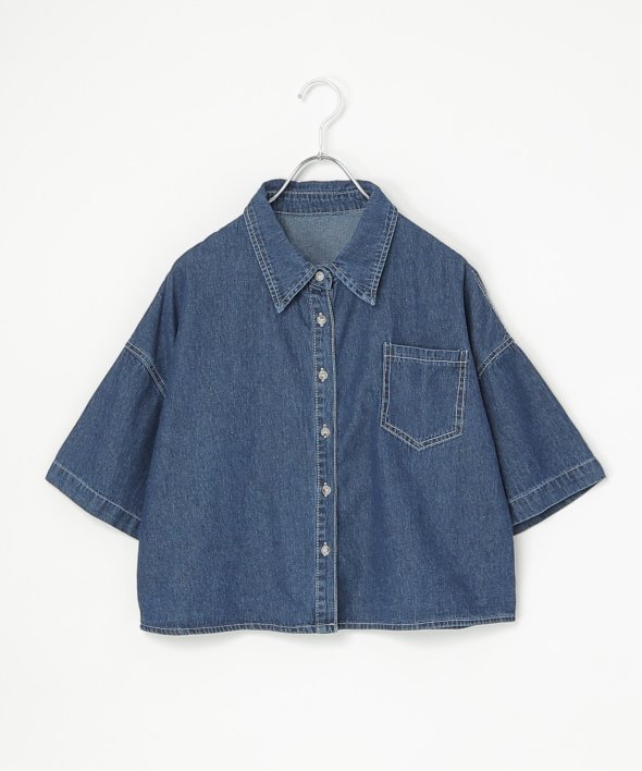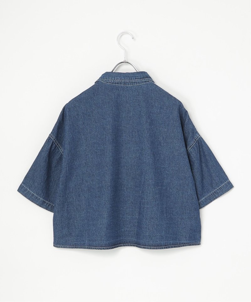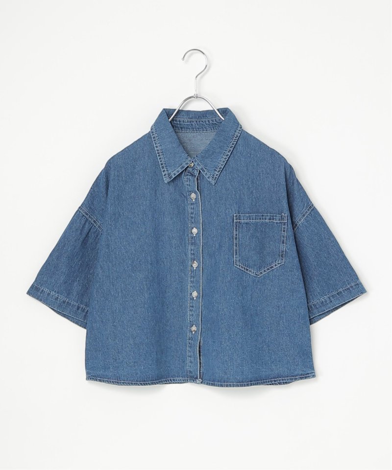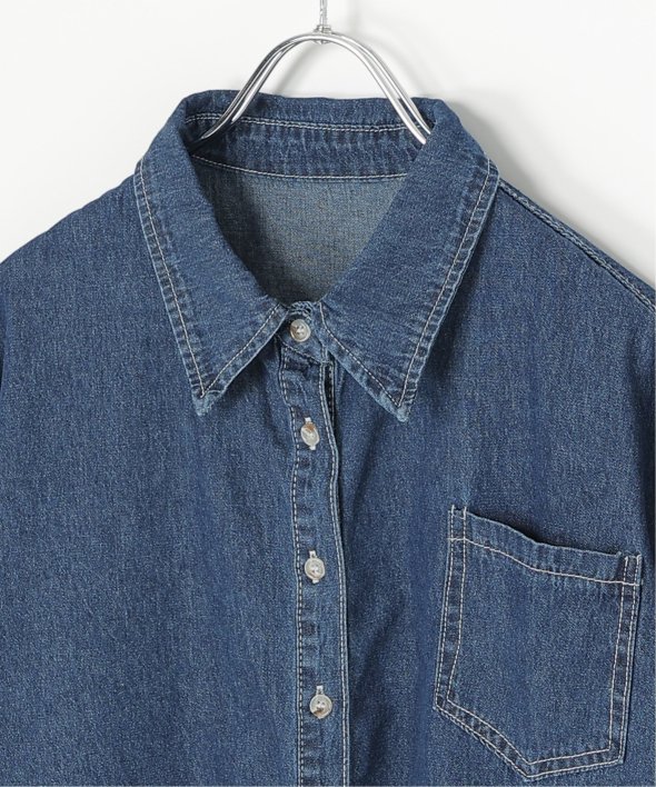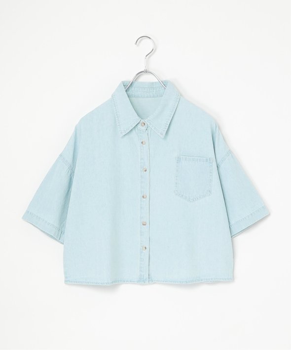 定番のデニムシャツをショート丈にアレンジ。