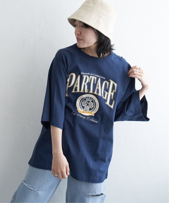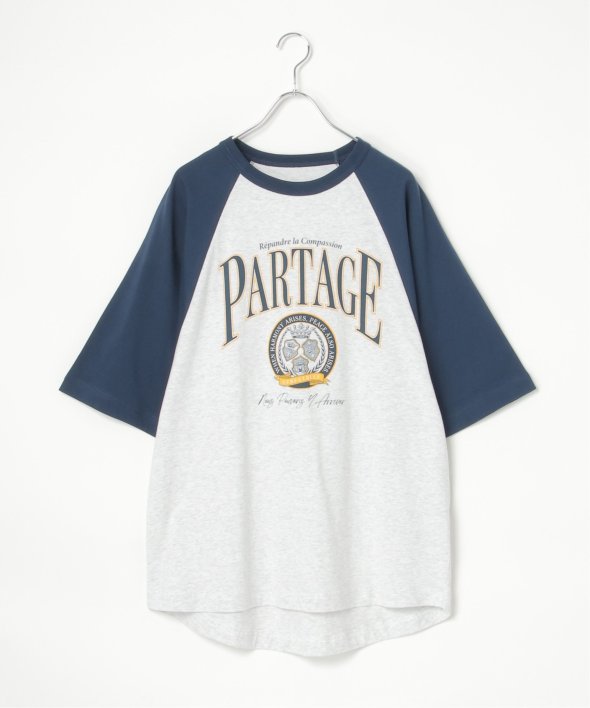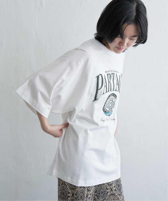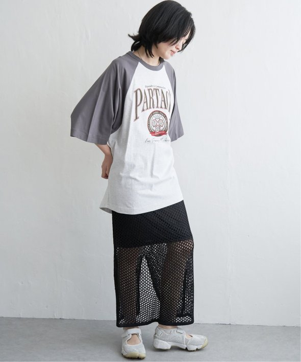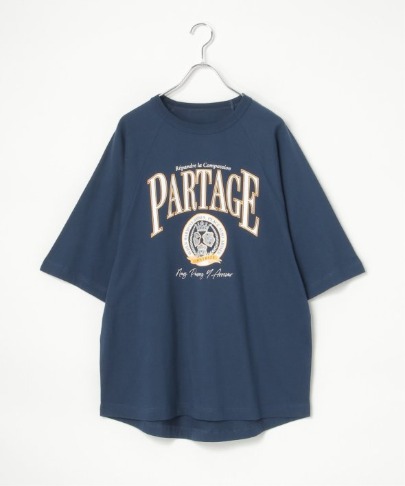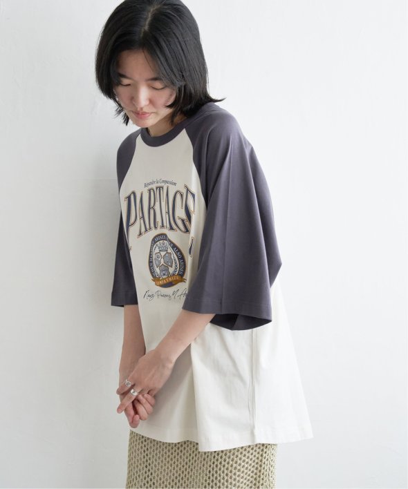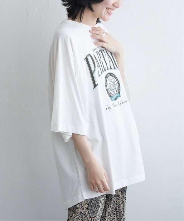 カレッジ風なロゴプリントのTシャツ。