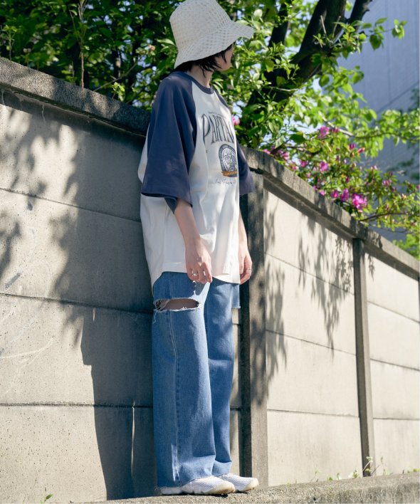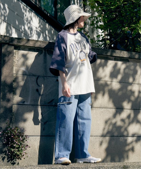 ラグランスリーブで肩回りにゆとりがあり、リラックスな着心地です。
