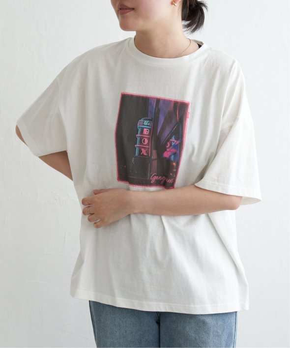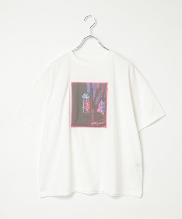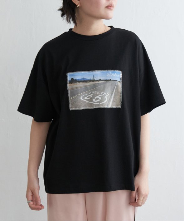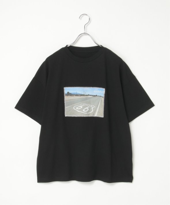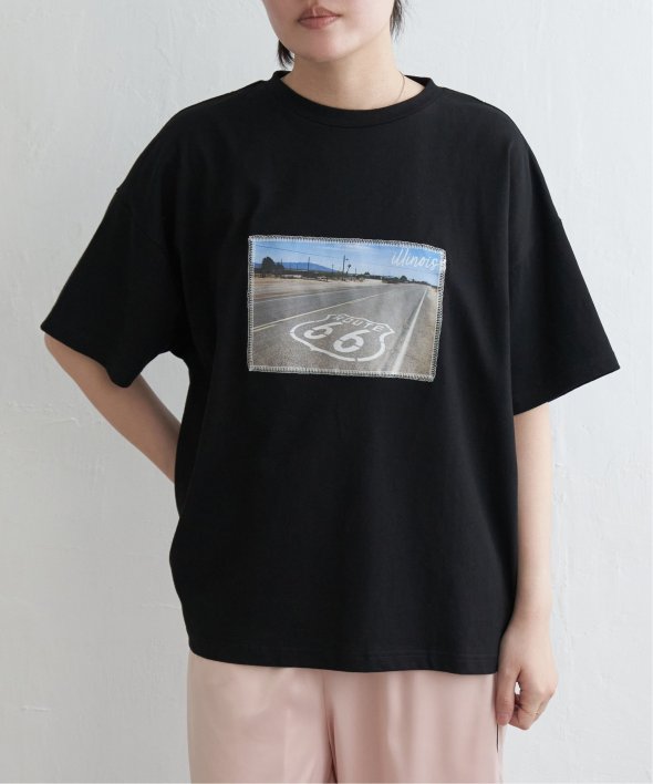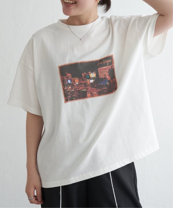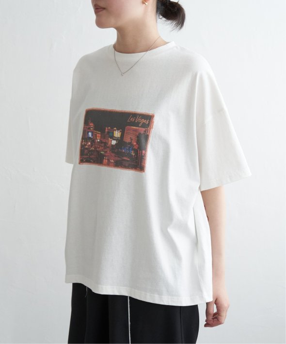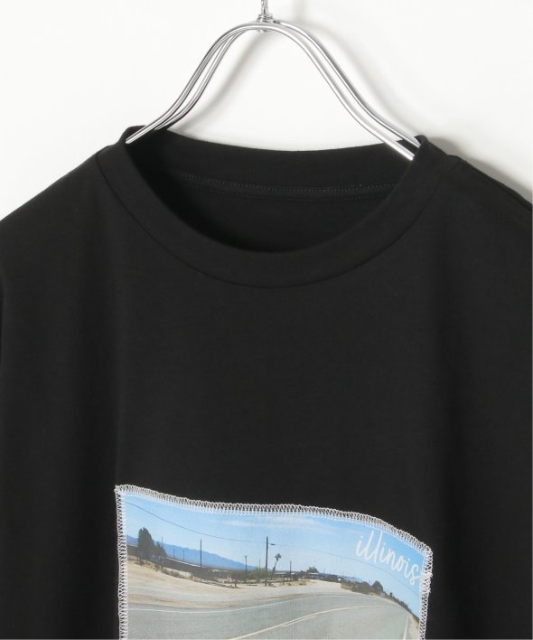 フォトプリントをステッチで貼り付けたワザありTシャツ。