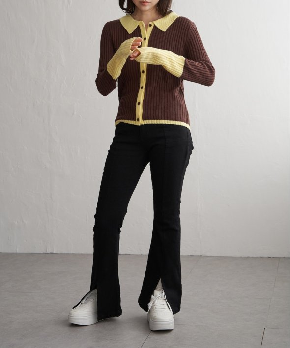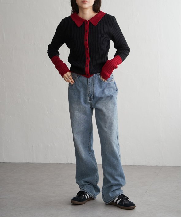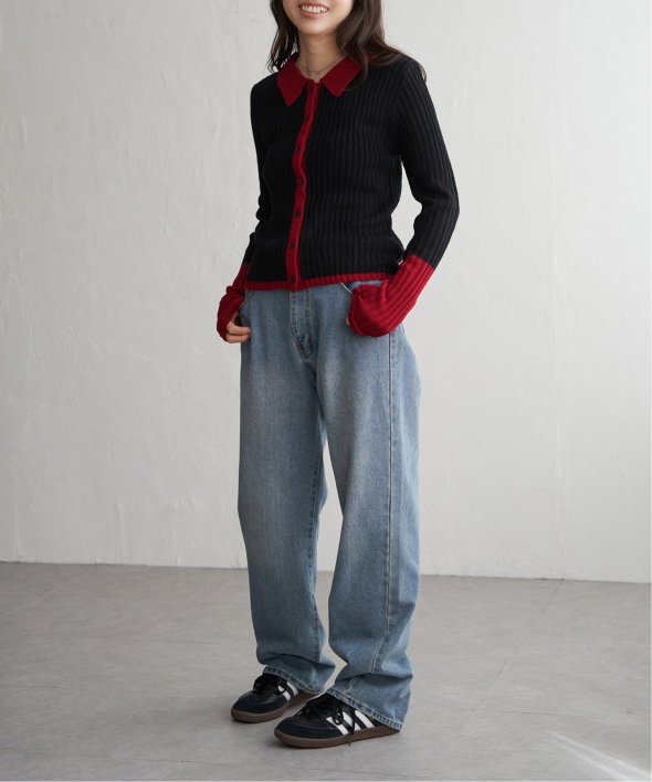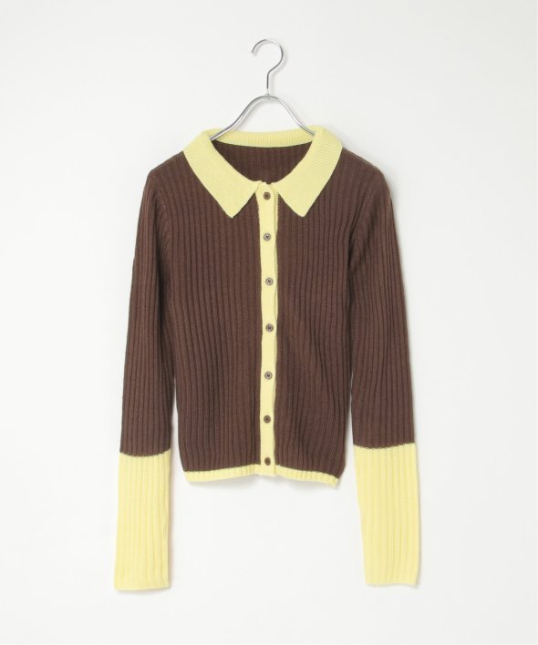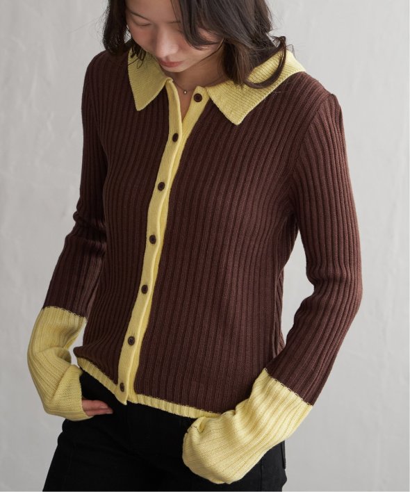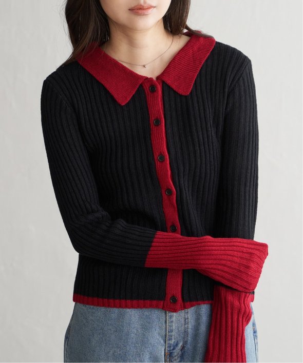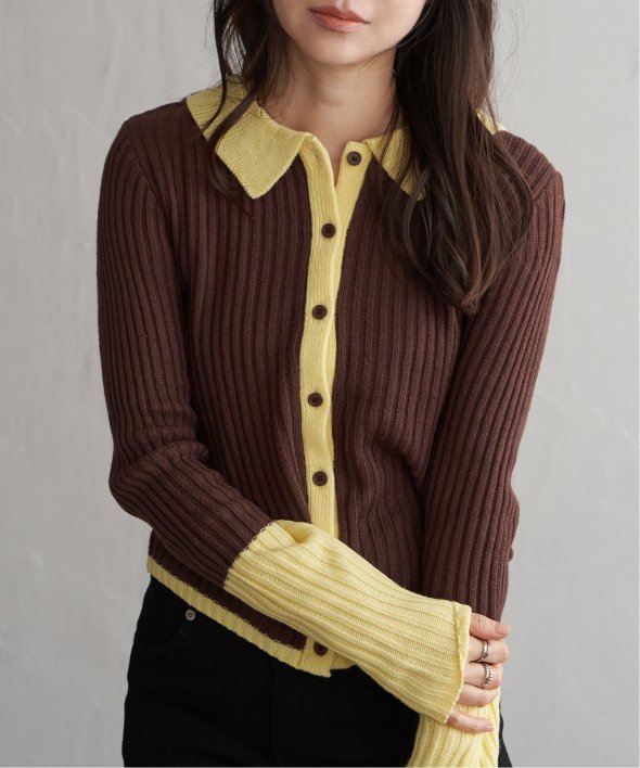 季節の装いにほどよい存在感を添えるバルキー7G配色ポロカーディガン。