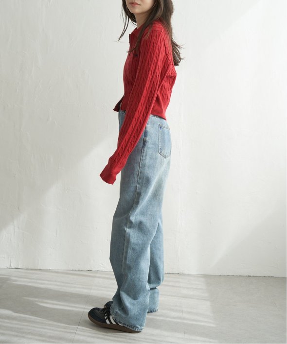 トレンド感を出すなら、ワイドパンツやハイウエストデニムと合わせてバランス良く。