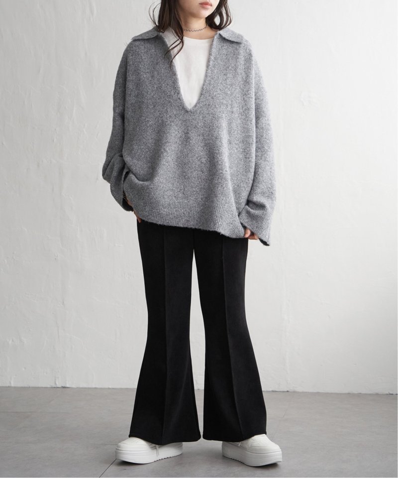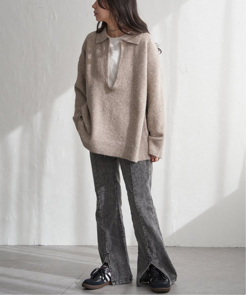 ネックは開きのあるデザインで、インナーとのレイヤードも楽しめます。