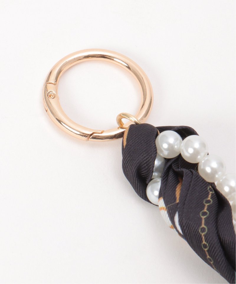 いつもの小物に、ほんのひと手間で表情を添えるパールスカーフチャーム。付けるだけで、普段使いのアイテムが今の気分に寄り添います。【デザイン】スカーフにパールを編み込んだ、存在感のあるチャーム。丸型ナスカン付きで、バッグや車のキーなどに簡単に取り付け可能。揺れ感のあるデザインが、手元や持ち物にさりげない華やかさをプラスします。【おすすめコーディネート】シンプルなトートバッグやミニバッグに合わせて、ポイント使いに。キーリングやポーチに付けて、アクセサリー感覚で楽しむのもおすすめです。