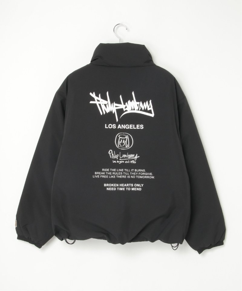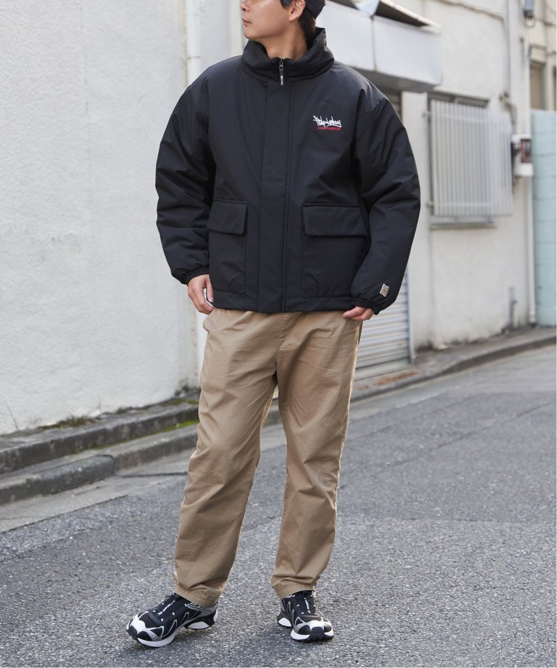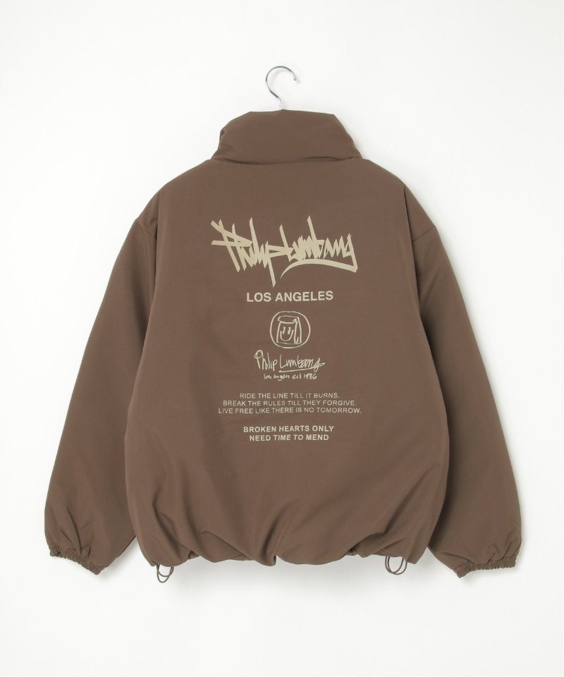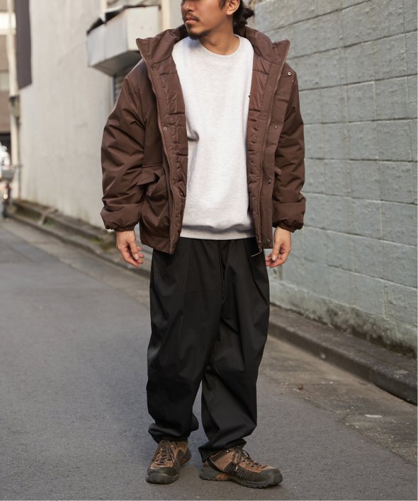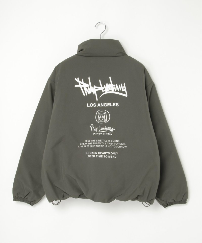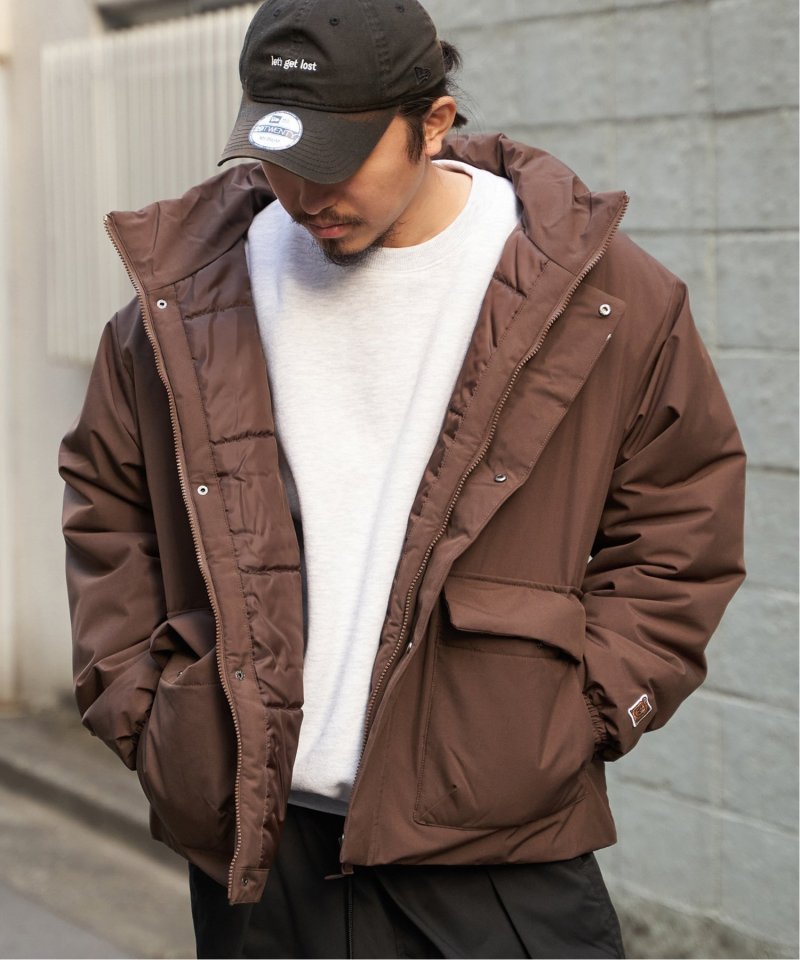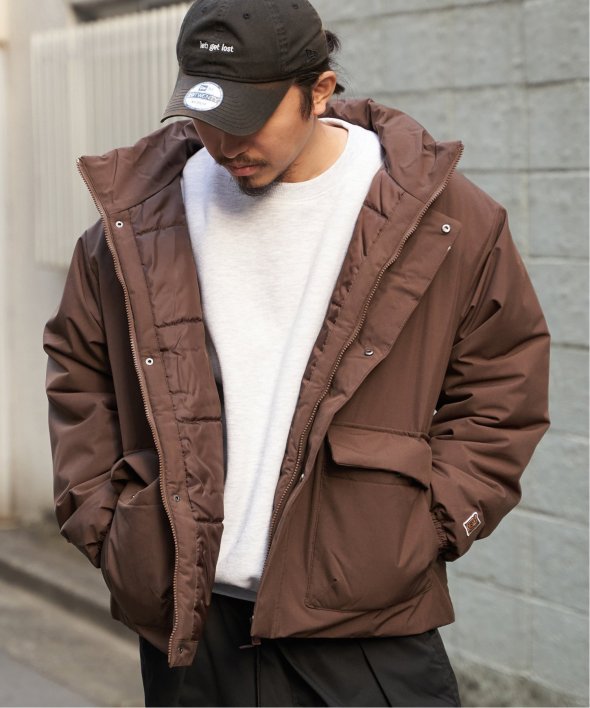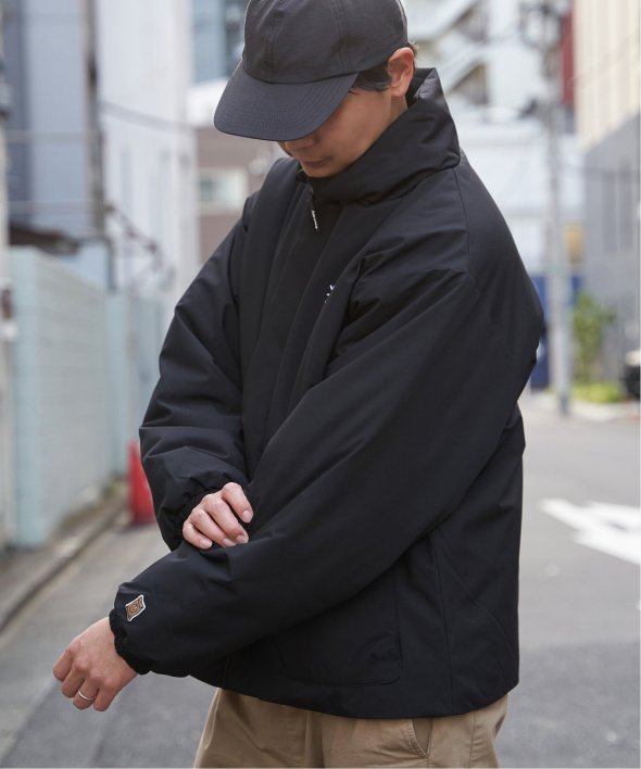 防風機能を備えた「Philip Lumbang」の中綿スタンドジャケット。