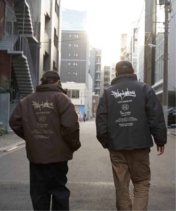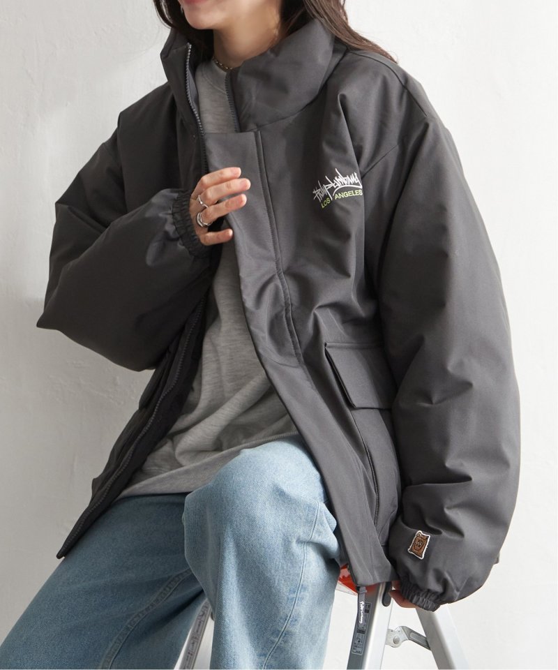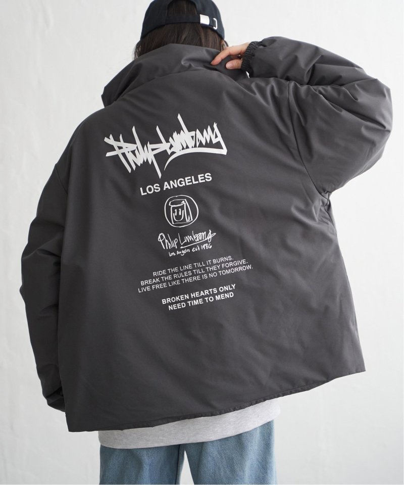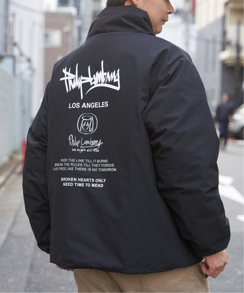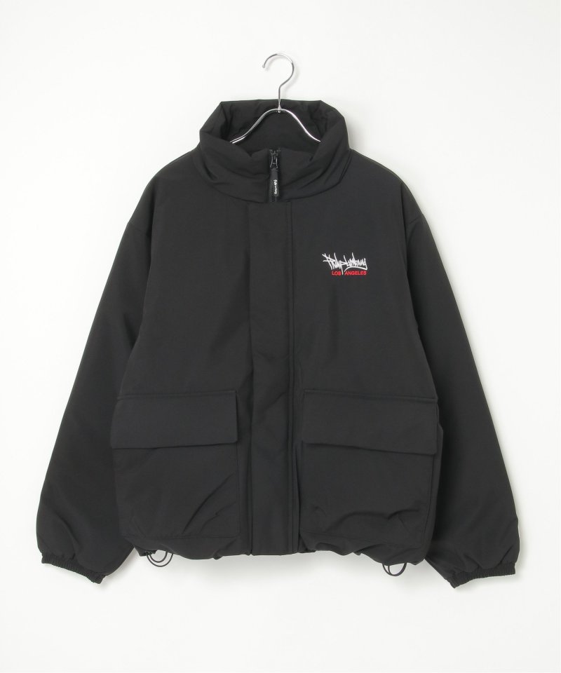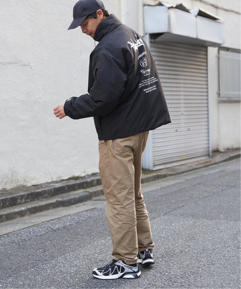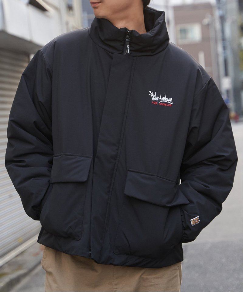 防風機能を備えた「Philip Lumbang」の中綿スタンドジャケット。