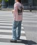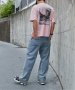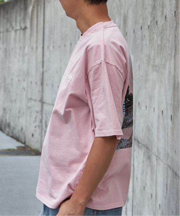 ピグメント加工でヴィンテージ感を出した雰囲気のあるアイテムで、ストリートカジュアルを演出するプリントTシャツ。