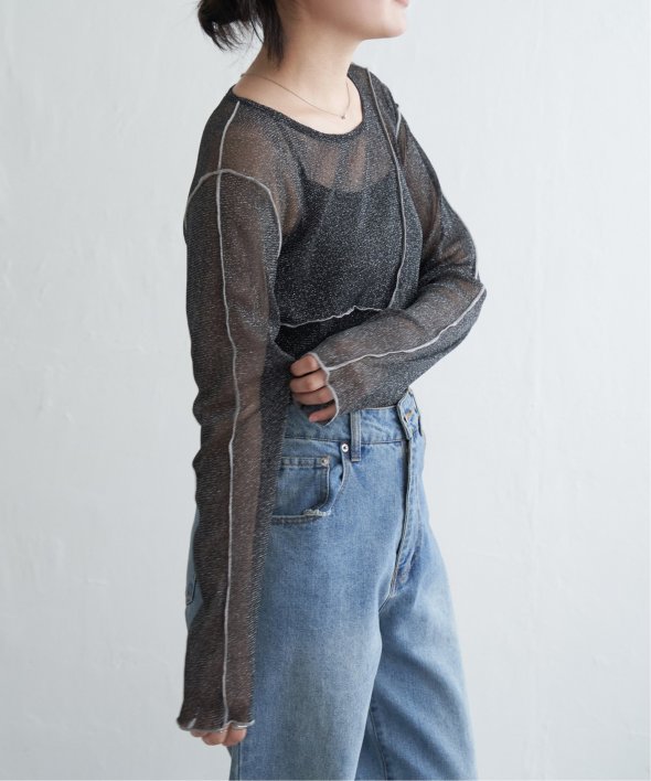 シアー感のあるラメチュール素材のプルオーバー。