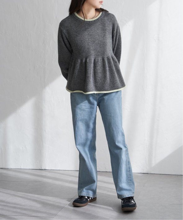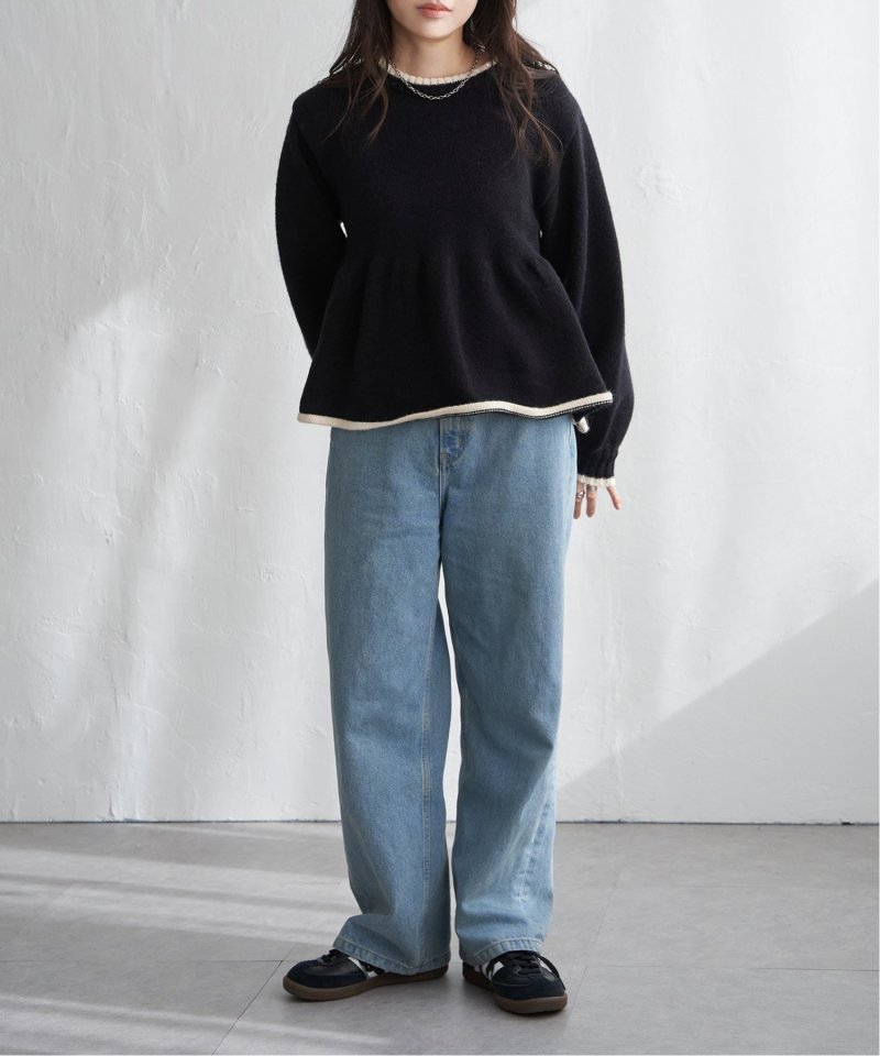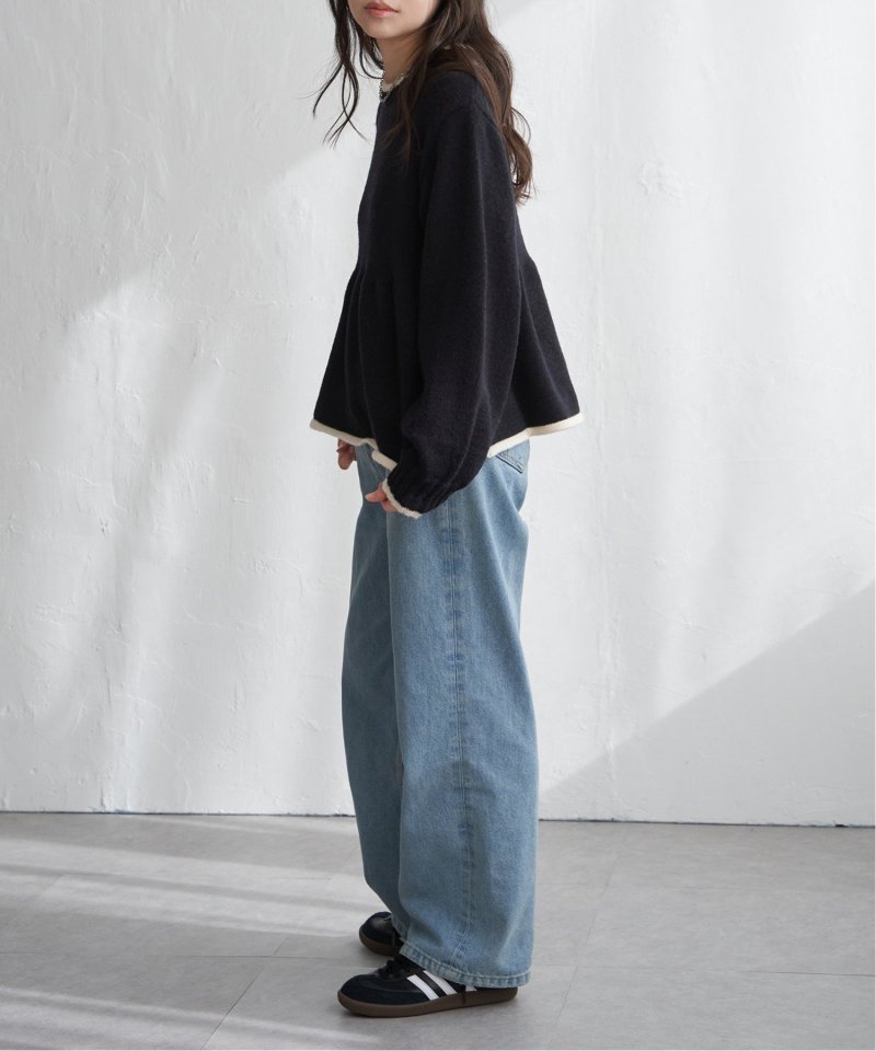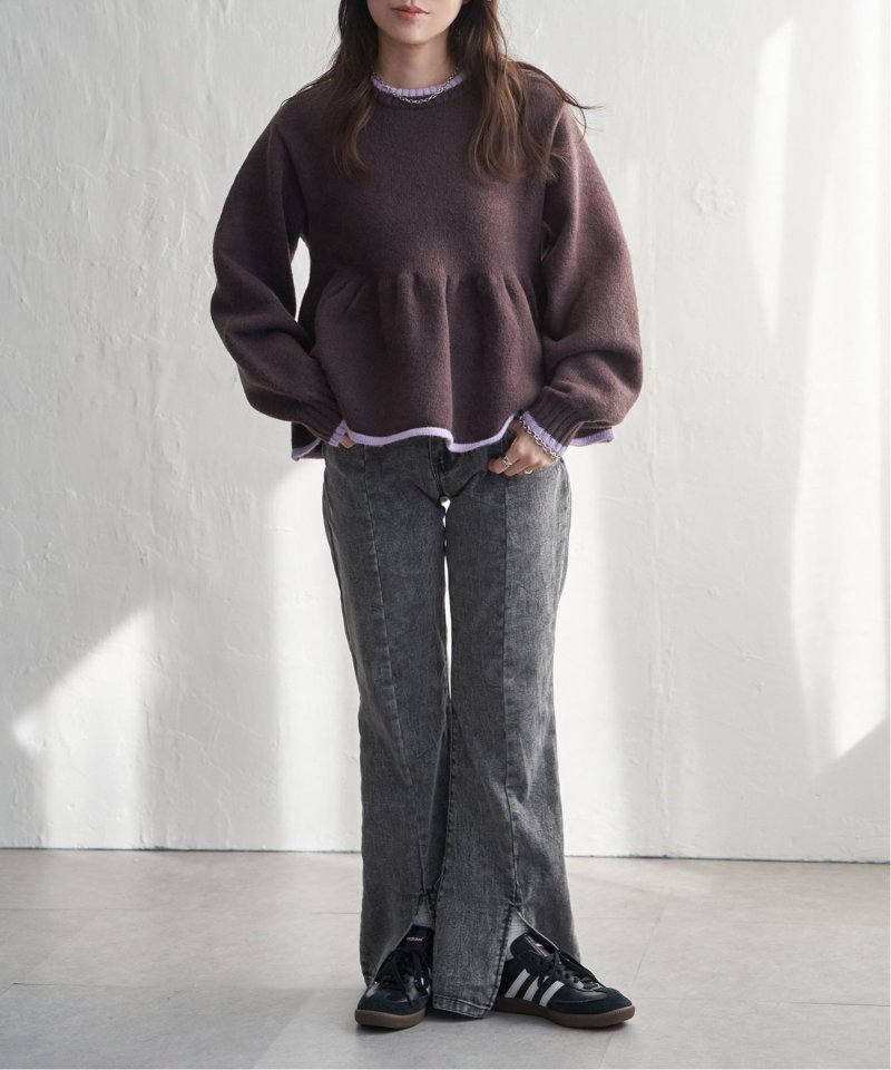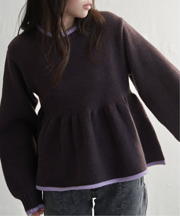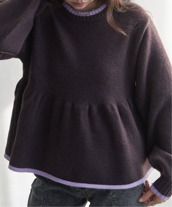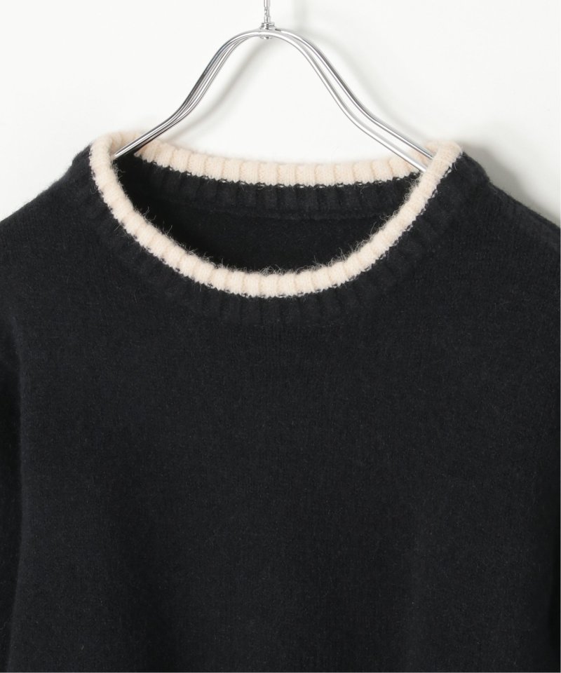 ふんわりとしたアルパカタッチの素材感と、シンプルながらアクセントになる配色デザインが目を引くプルオーバー。