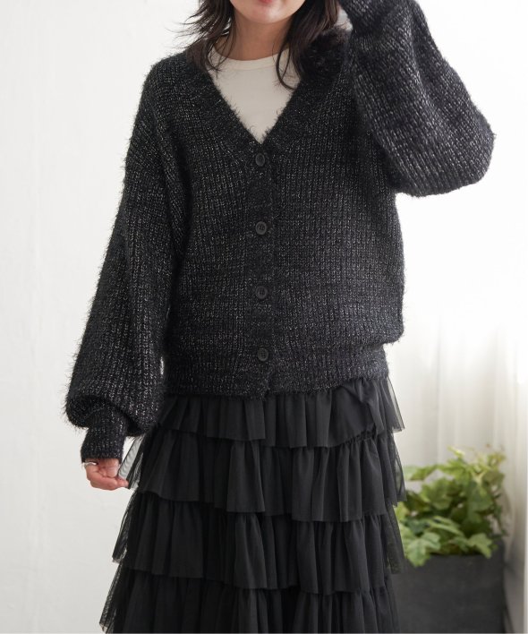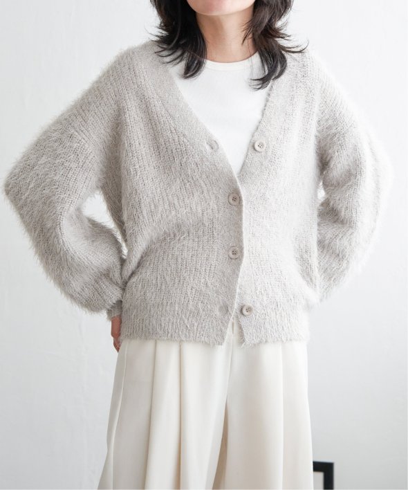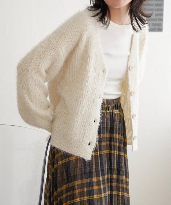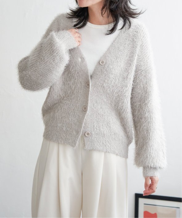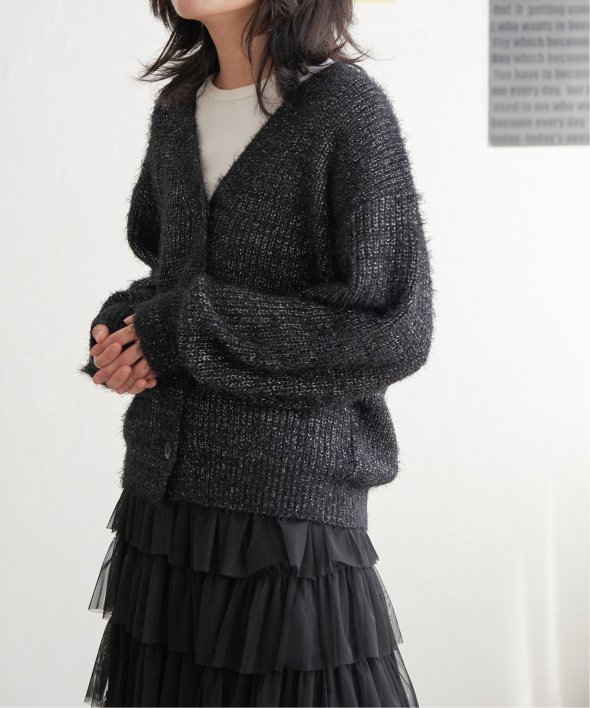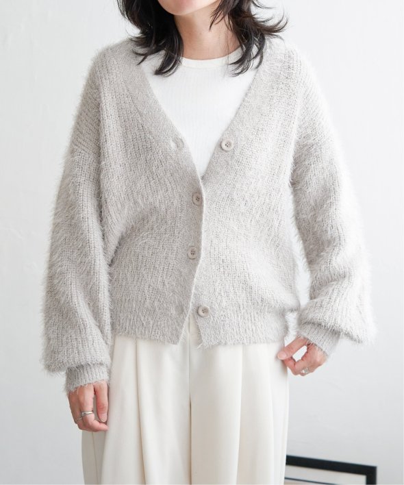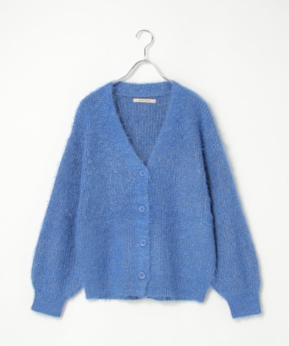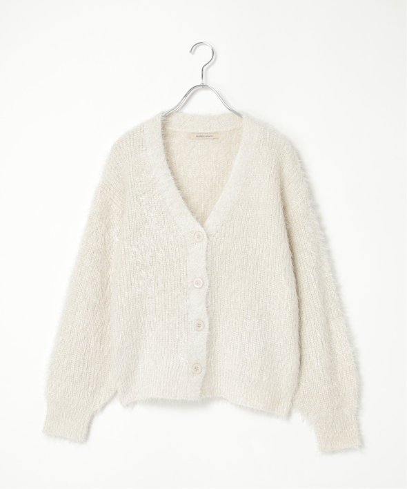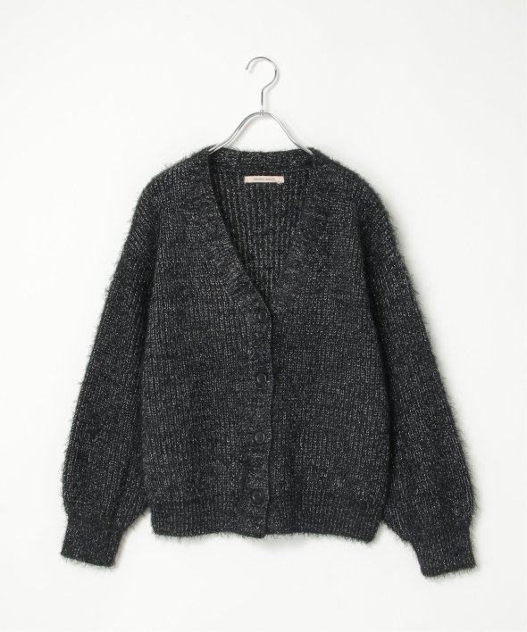 毛足の長いシャギーニットにラメをプラスしたVネックカーディガン。