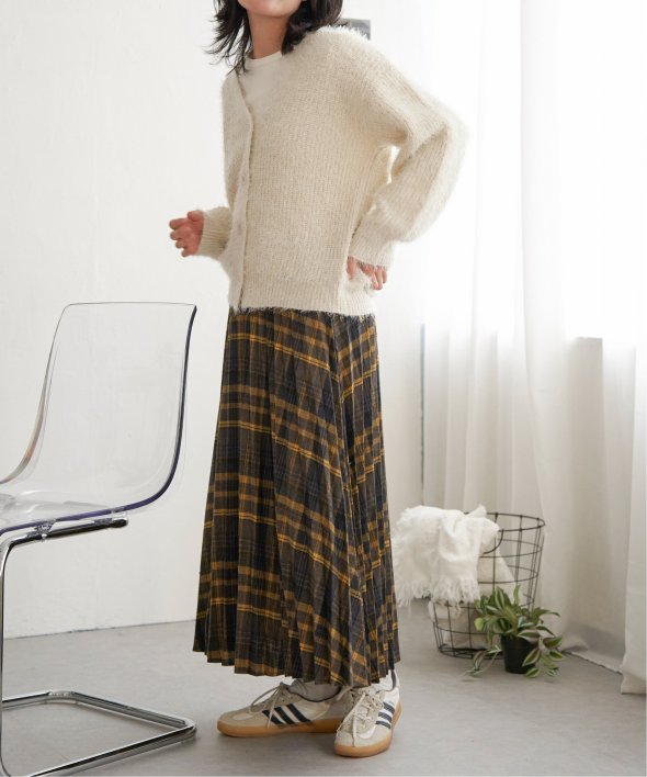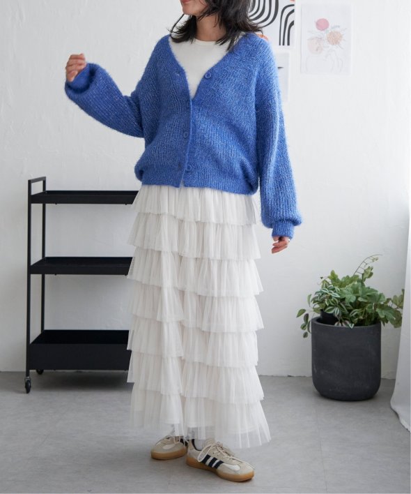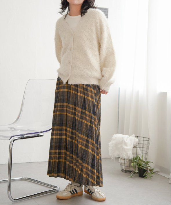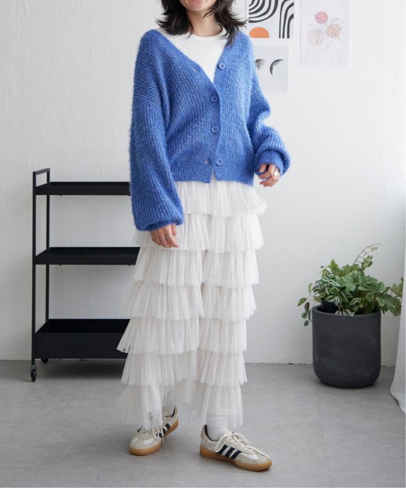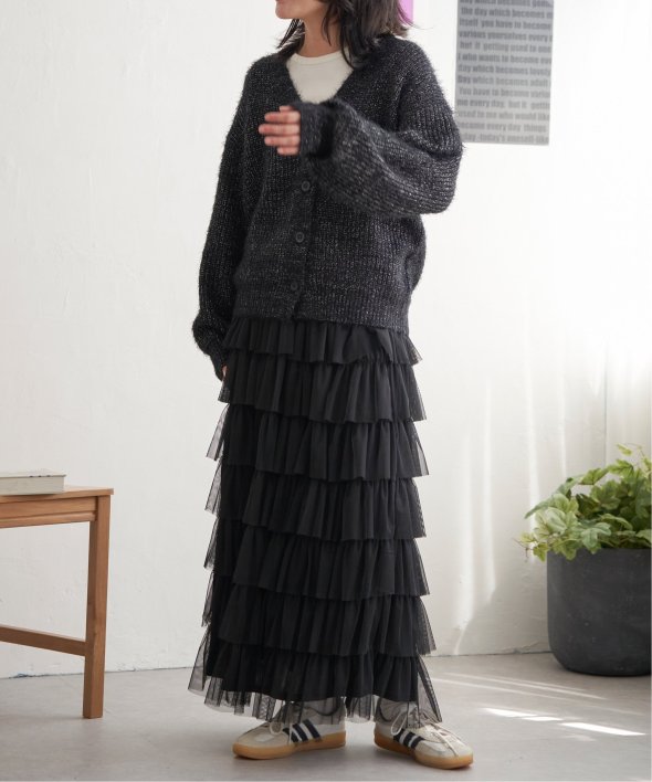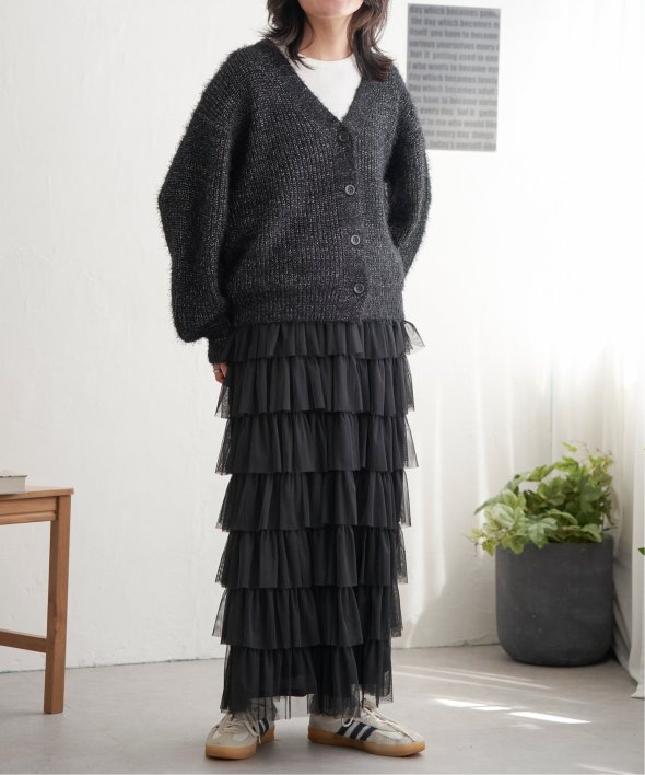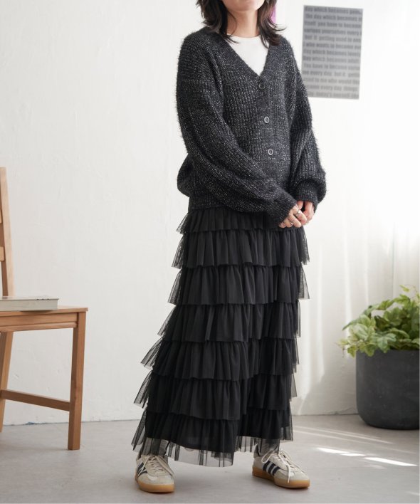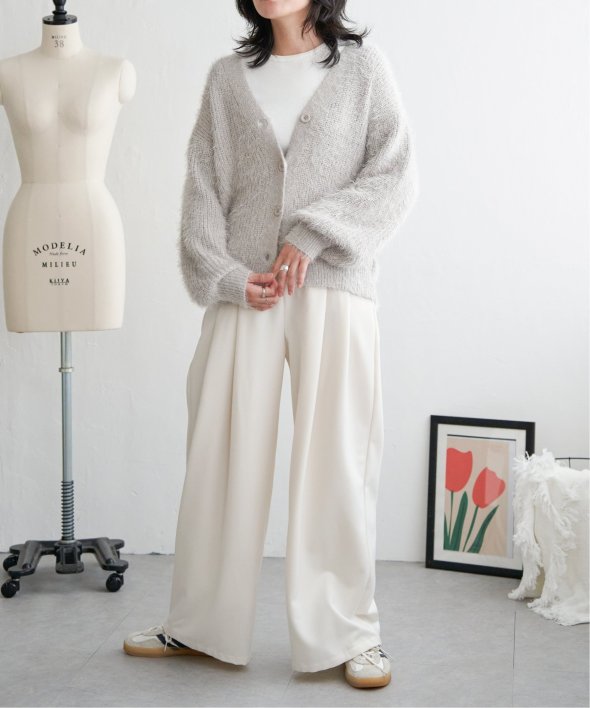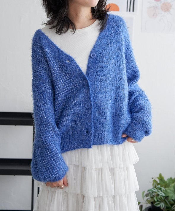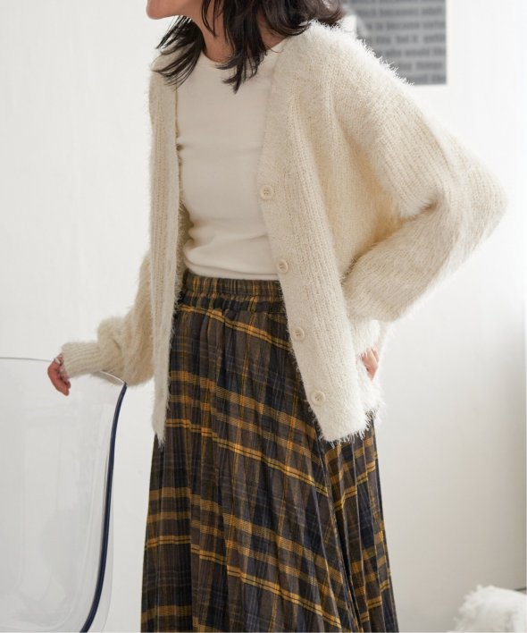 毛足の長いシャギーニットにラメをプラスしたVネックカーディガン。