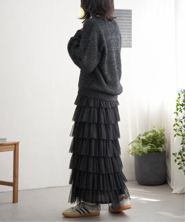 ラメ糸を織り交ぜたシャギーニット。