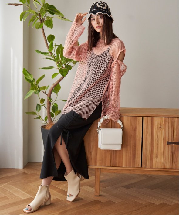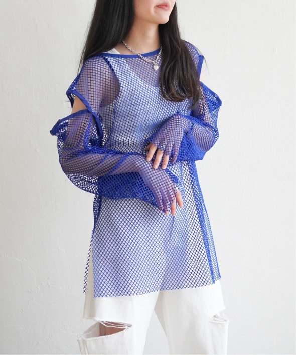 メッシュ素材で涼しくおしゃれにレイヤードできます♪