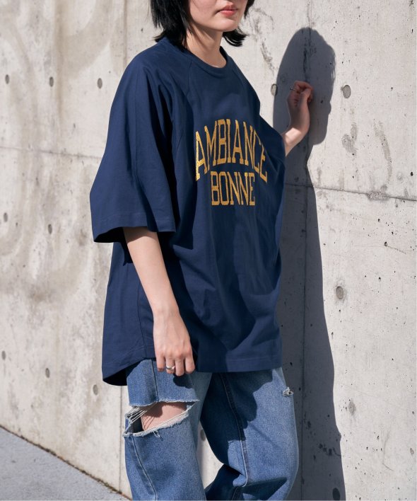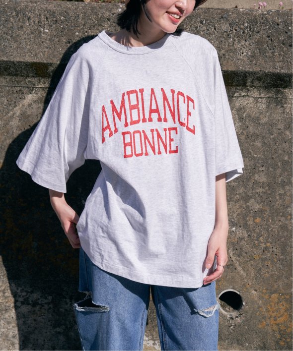 カレッジ風なロゴプリントのTシャツ! AMBIANCE ラグランT