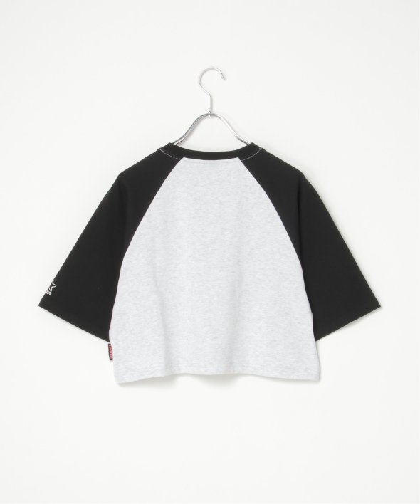 配色のラグランスリーブで、レトロ感のあるデザインです。
