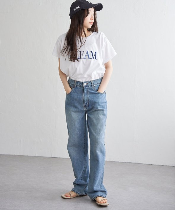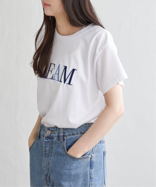 目を引く“GLEAM”のロゴ刺繍が胸元に映えるTシャツ。