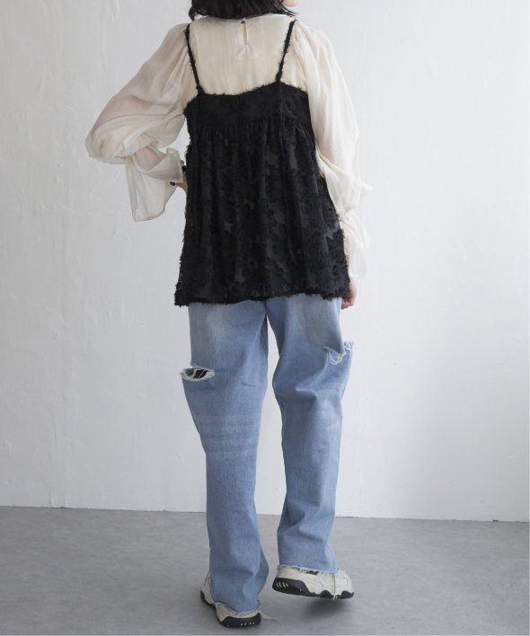 毛足感のあるフリンジが華やかなキャミソール。