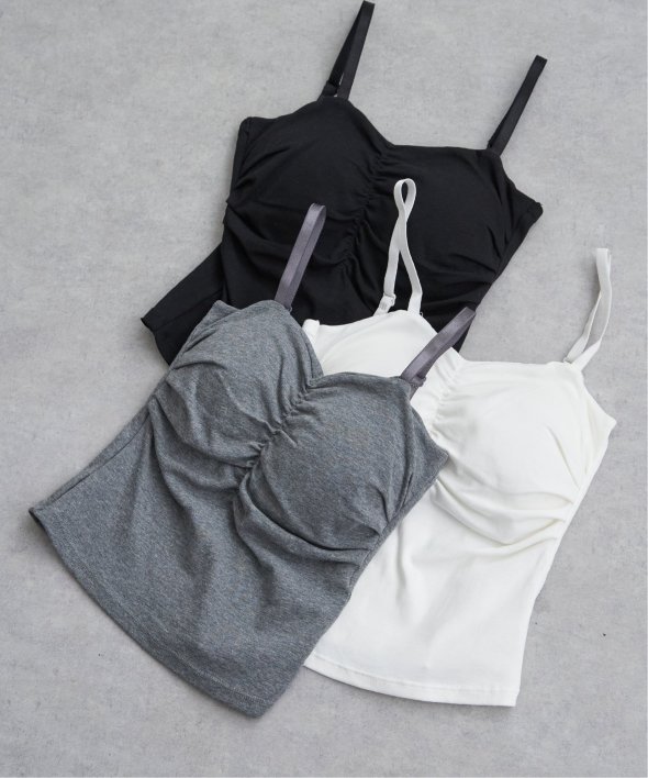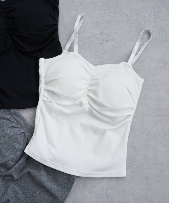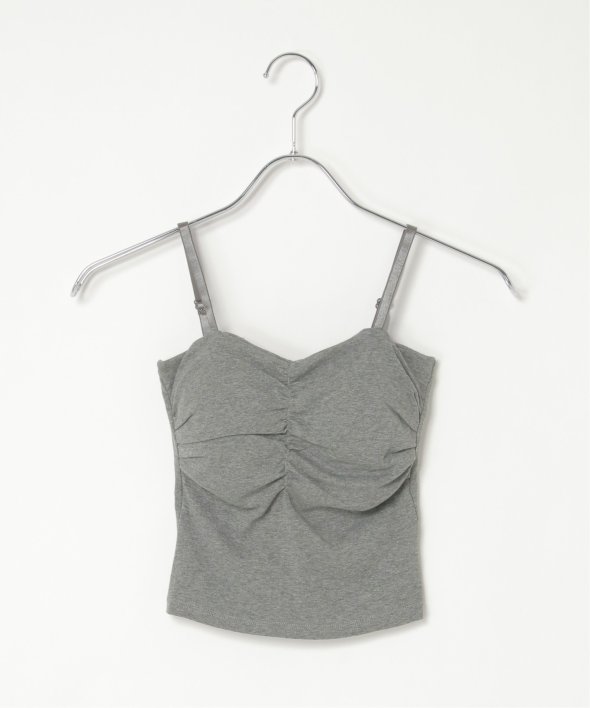 胸元にギャザーを寄せた立体的なフォルムが特徴のブラトップ。