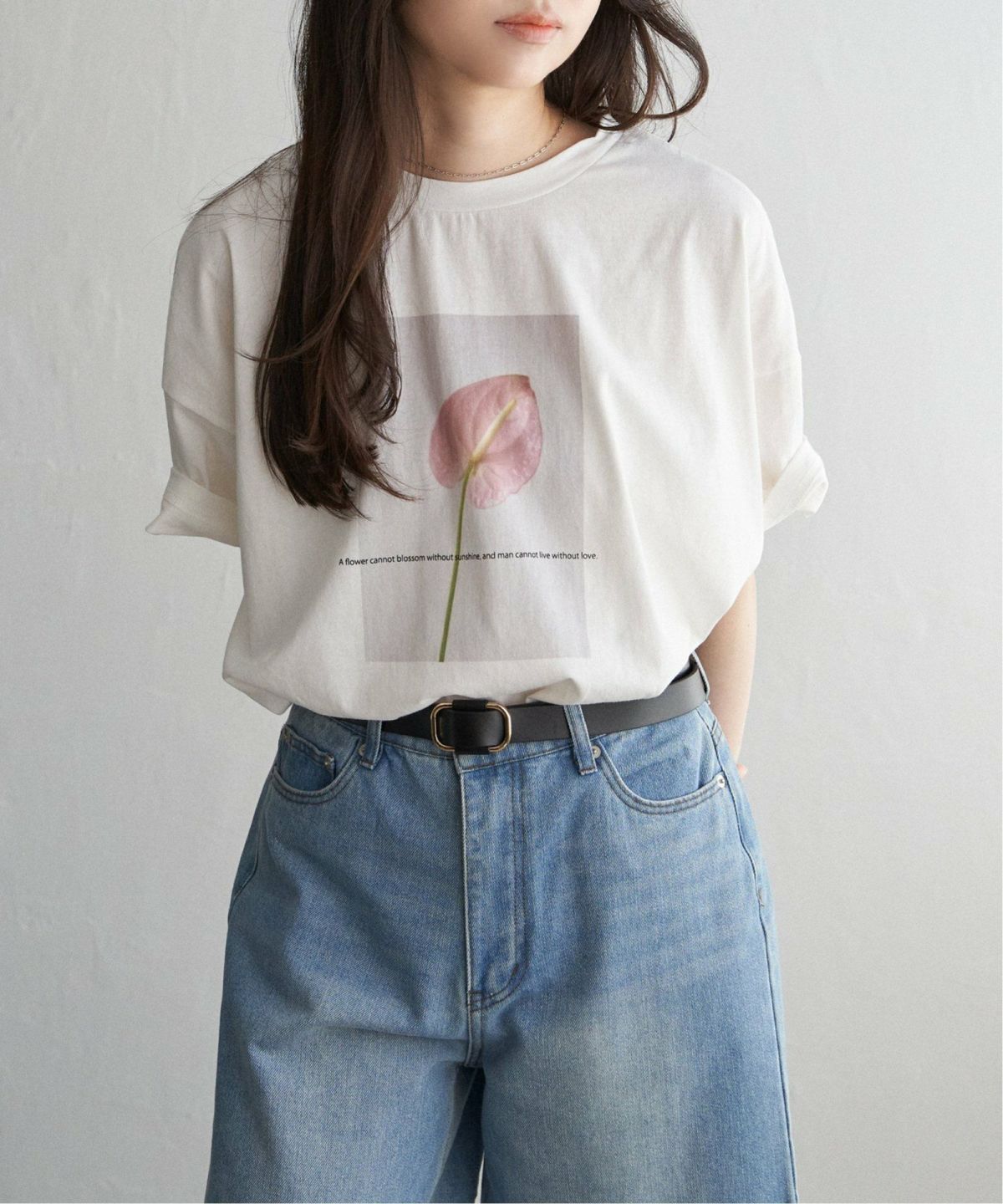 シックなフォトプリントで品よく着こなす 綿天竺フラワープリントTシャツ
