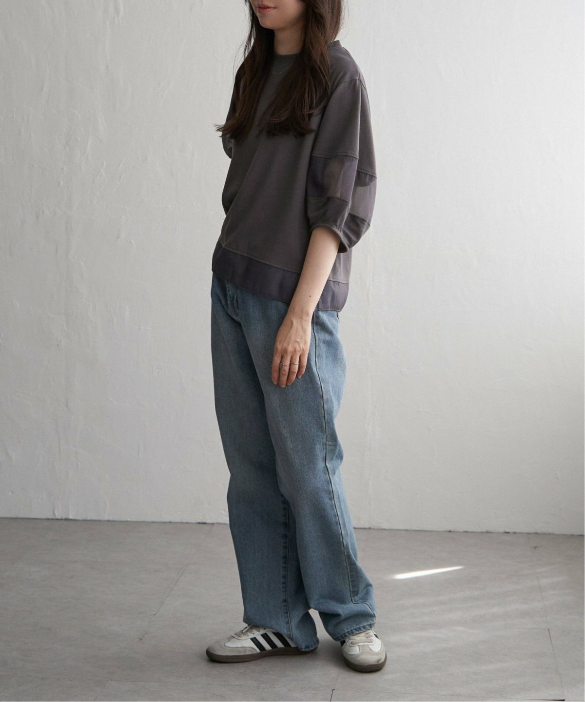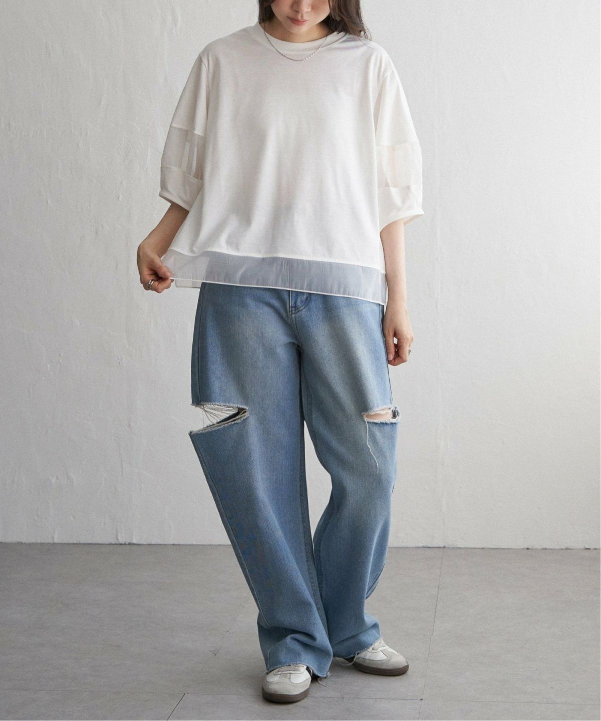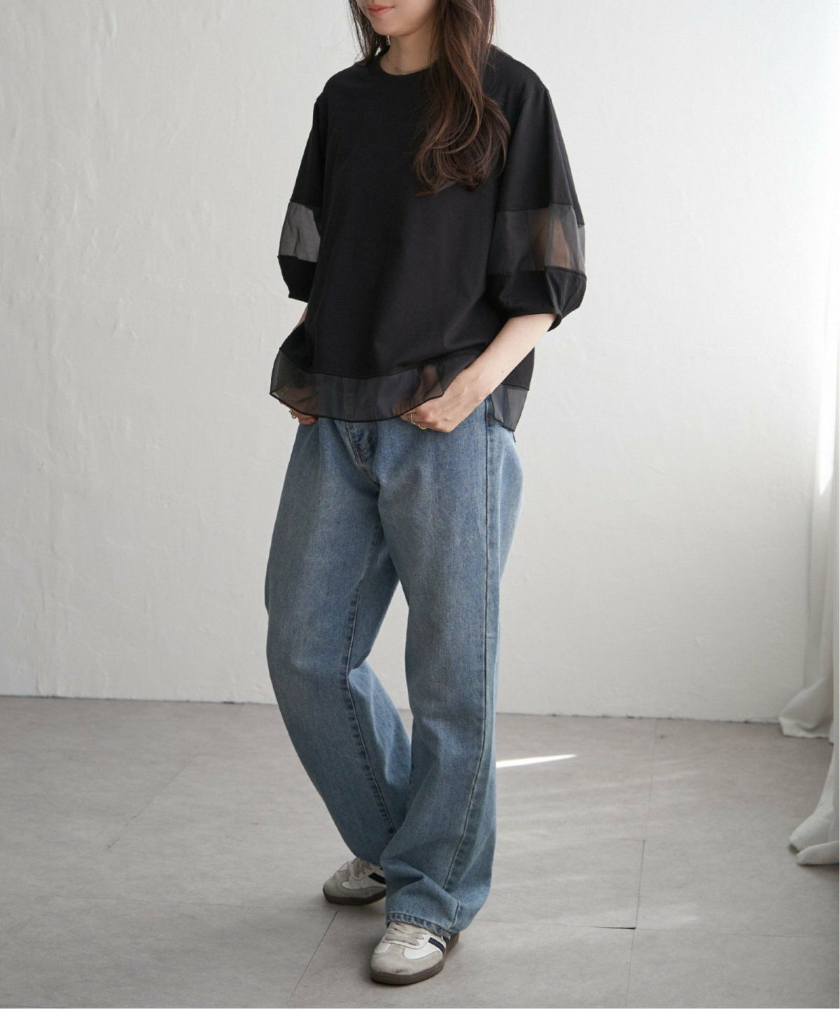 透け感が魅力!清涼感のあるプルオーバー 袖オーガンジー切り替えプルオーバー