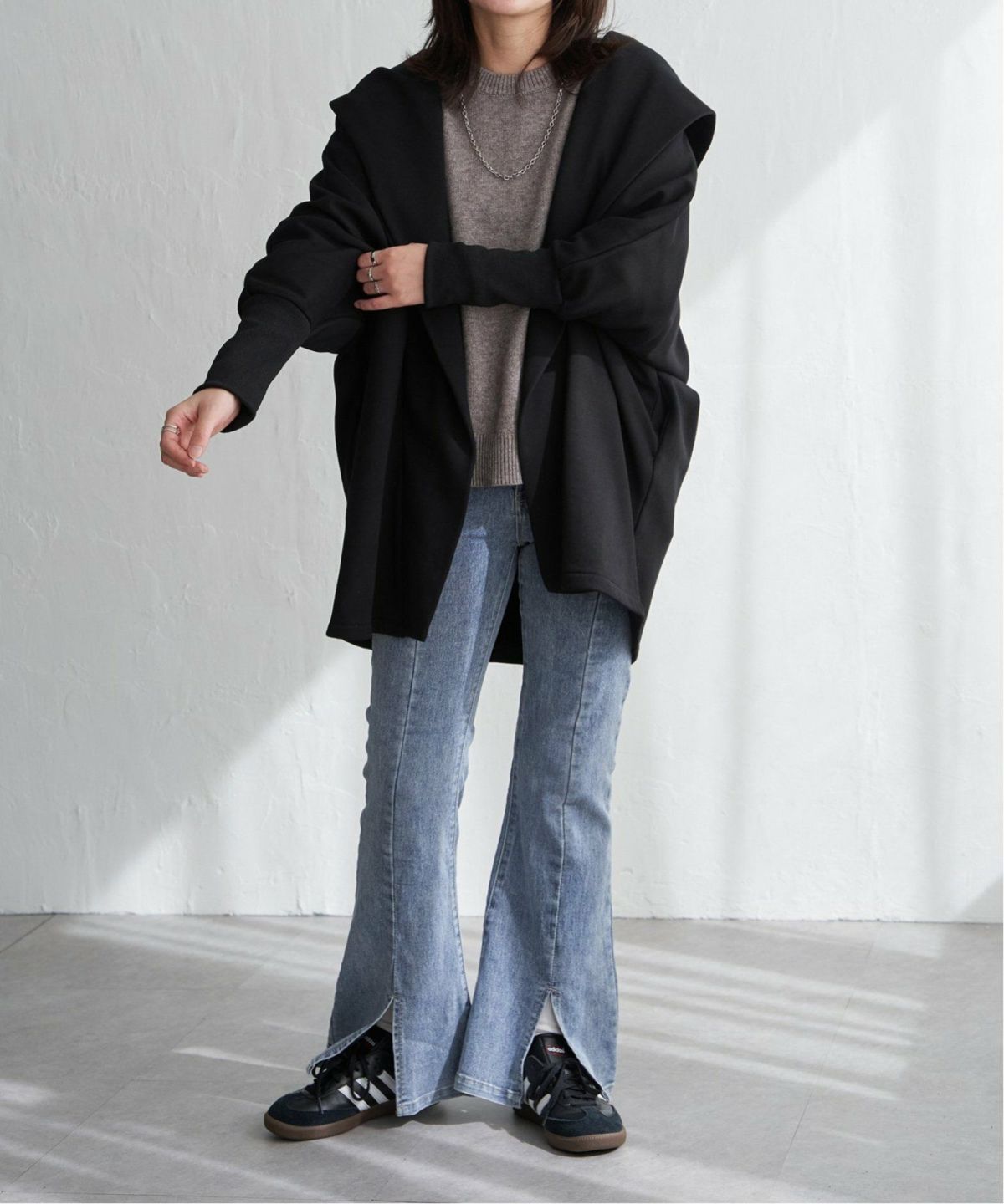 ボタンレスの軽さと、裏フリースのぬくもりをひとつに 裏フリースドルマンガウン