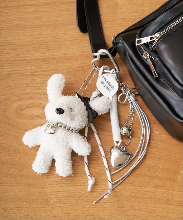 もこもこ素材のボアドッグが主役のチャーム。