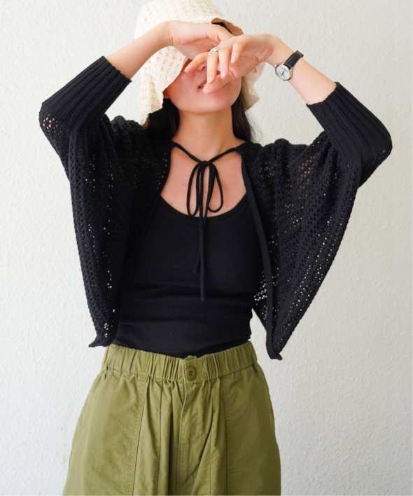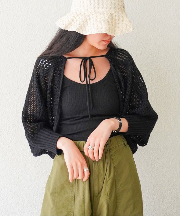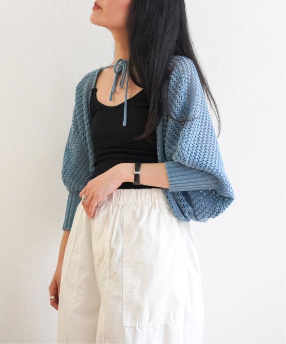 夏場にちょっと羽織りがほしい時に便利な、涼しげなメッシュボレロ。