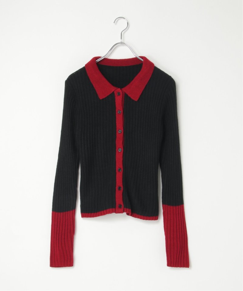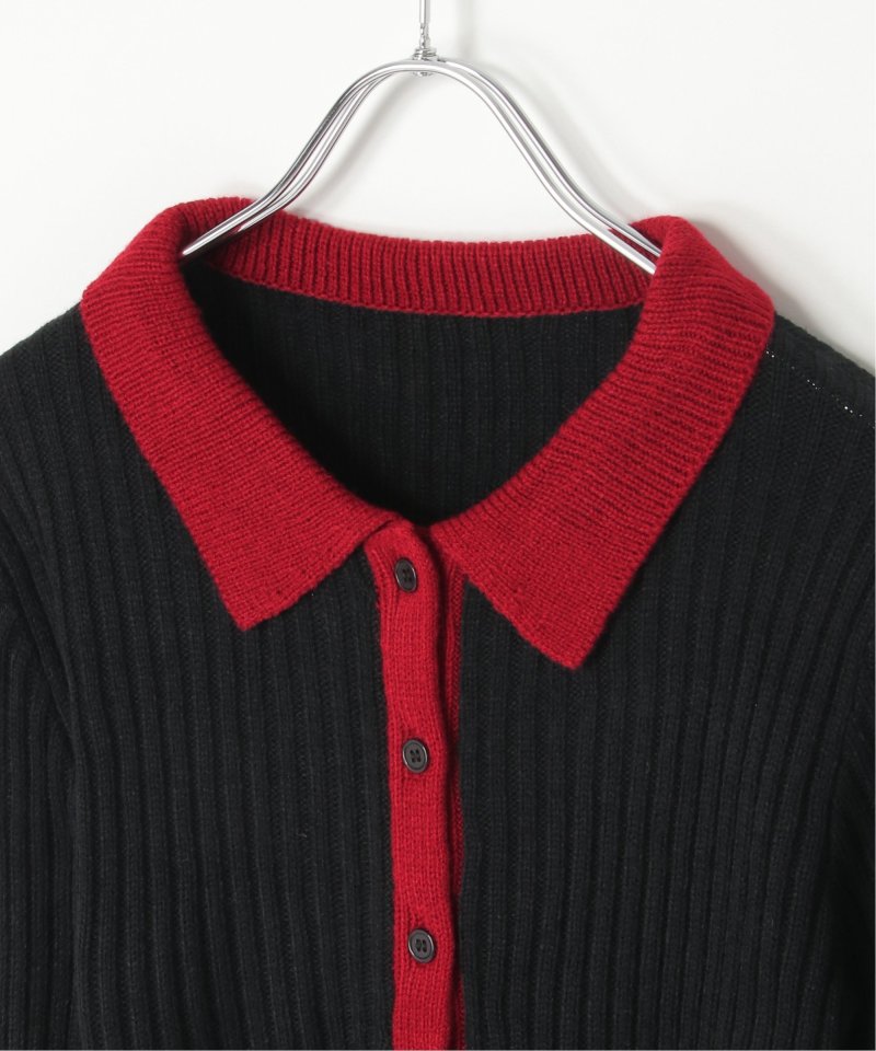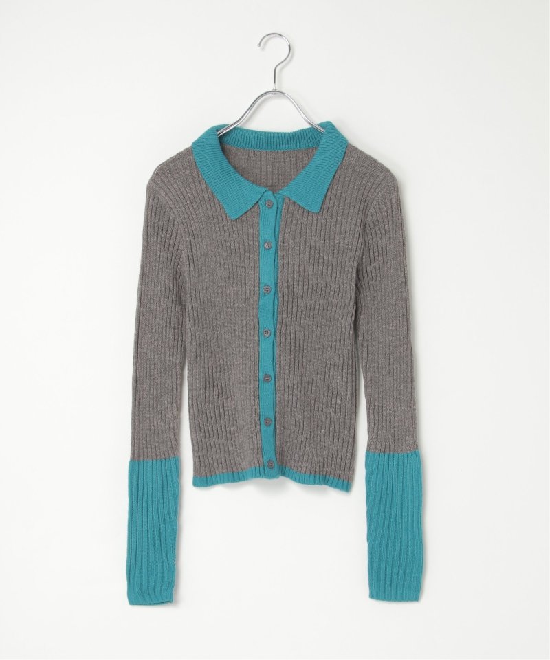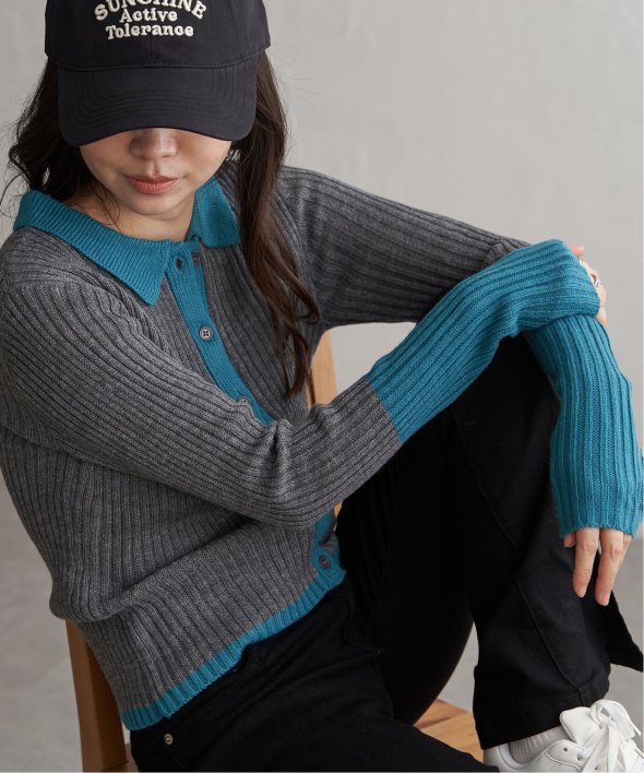 季節の装いにほどよい存在感を添えるバルキー7G配色ポロカーディガン。