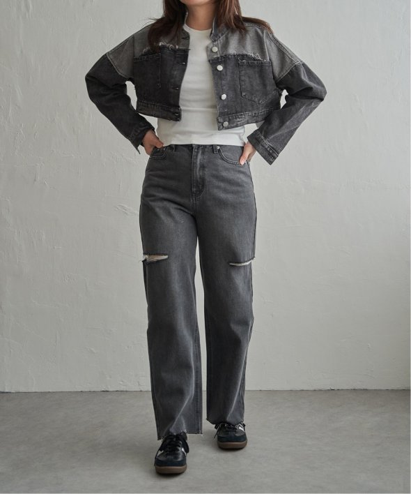 トレンドのショート丈に大胆な切り替えを施したクロップドGジャン。