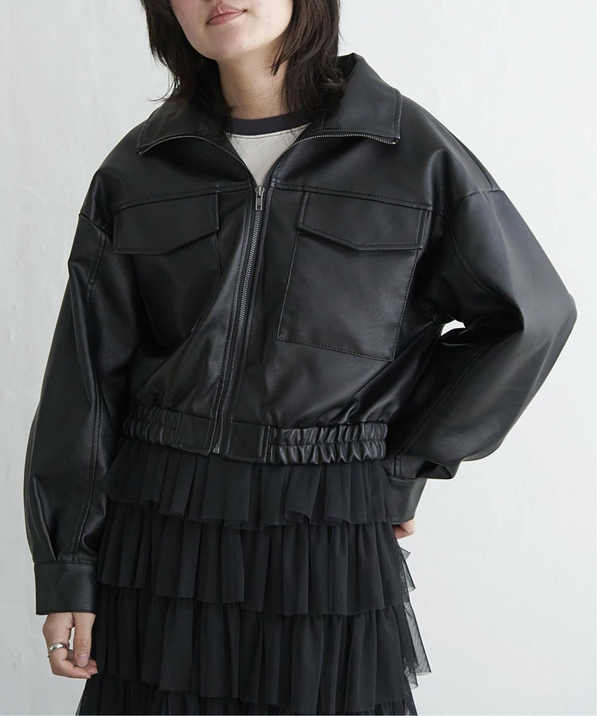 VENCE 500円クーポン モアオフ最大3000off 得春 最大1500off 他の画像を見る ハードな雰囲気にやわらかさをプラスした一着 合皮ショートジャケット ¥ 8,250 税込 カートに入れる お気に入りに登録する