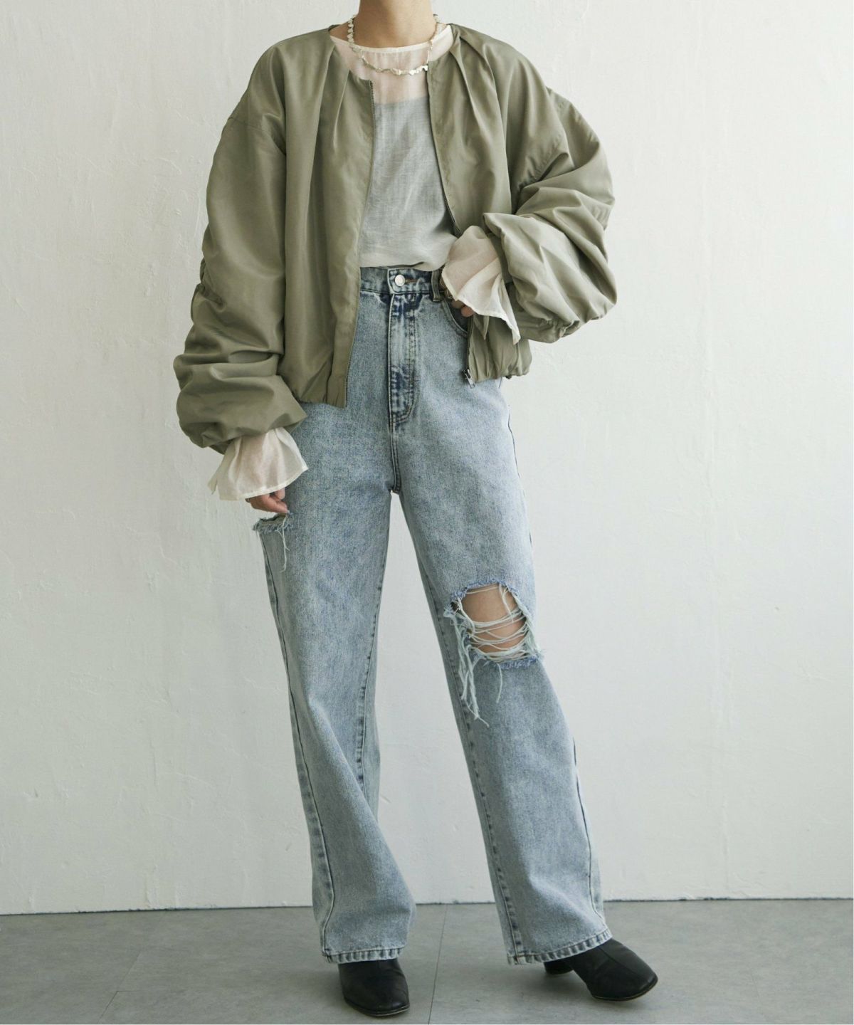VENCE 500円クーポン モアオフ最大3000off 得春 最大1500off 他の画像を見る 透け感×シャーリングで、今っぽさも女性らしさも◎ シアータフタシャーリングブルゾン ¥ 8,030 税込 カートに入れる お気に入りに登録する