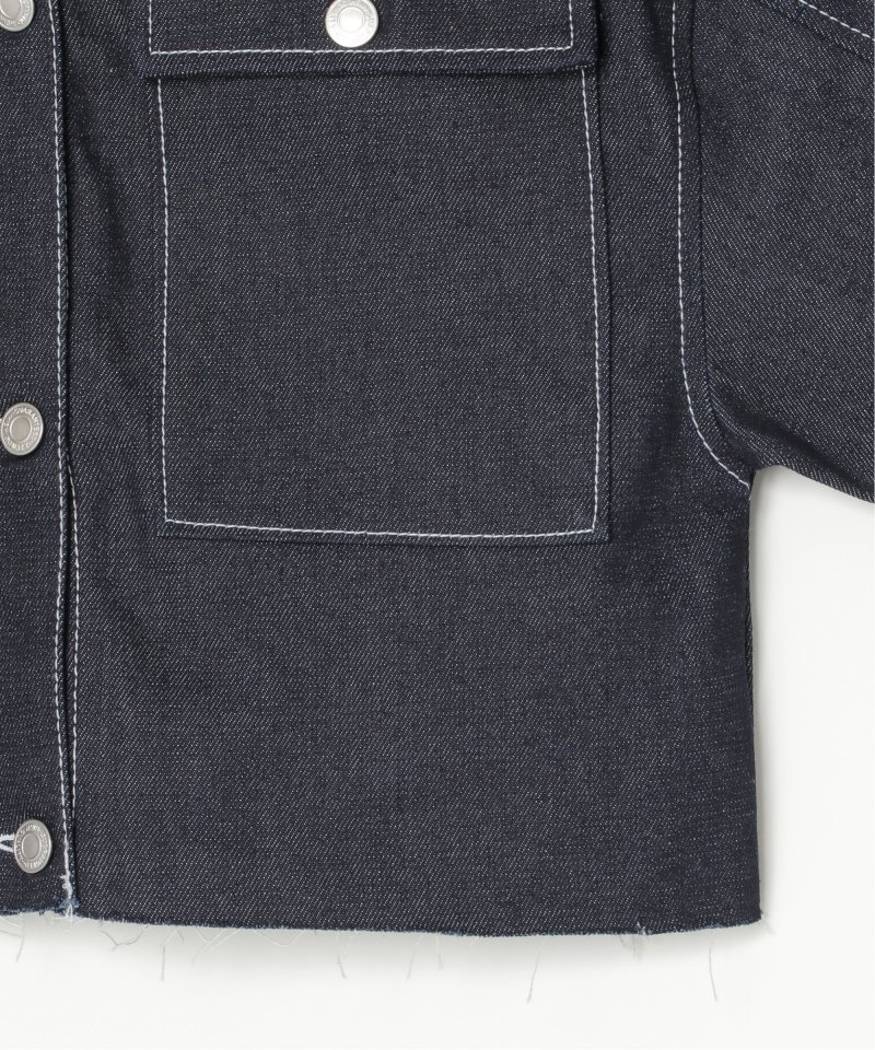 加工をしていないリジットデニムを使用した、ショート丈のデニムジャケット。
