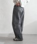 ウエストのタック、膝位置の切り替え、裾にもタックを入れたコクーンシルエットが特徴。