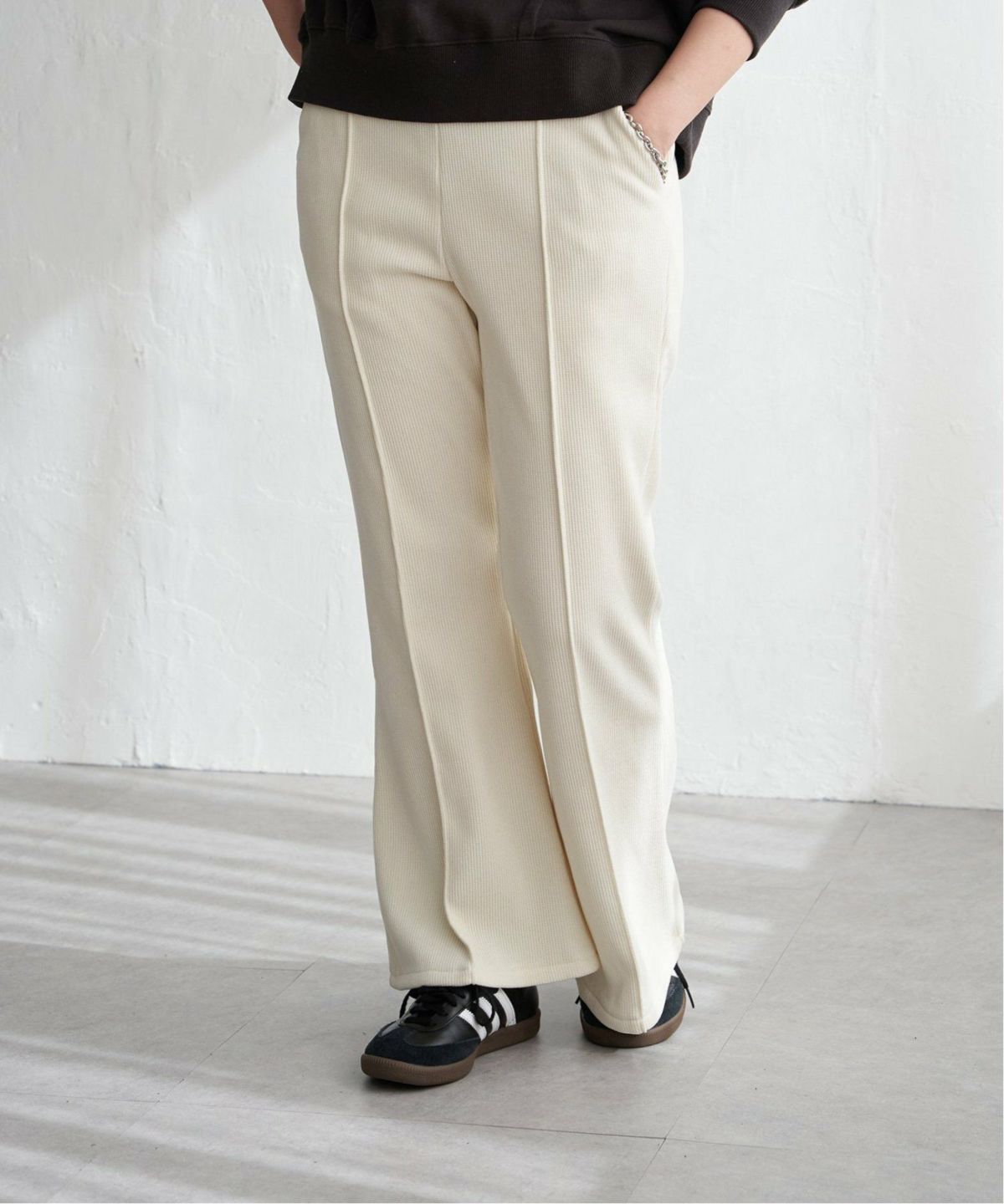 VENCE モアオフ最大3000off 得春 最大1500off 他の画像を見る ラインが引き立つ絶妙カーブ、着るだけで今っぽく ミニ裏毛ライン入りカーブパンツ ¥ 5,390 税込 カートに入れる お気に入りに登録する