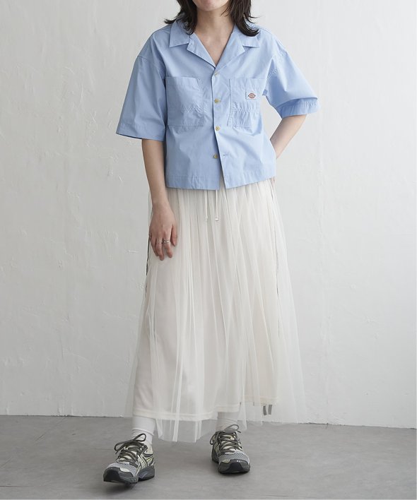 ワークブランドのアイデンティティを活かしながら、都会的なエッセンスをプラスしたクロップドシャツ。
