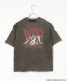 モノトーンベースのシンプルなTシャツに大胆なモチーフをプリントしたバンドT。